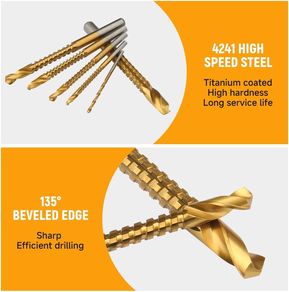 【متينة وطويلة الأمد لتطبيقات متعددة】 يضمن مزيج من HSS وطبقة التيتانيوم أن أجزاء الحفر هذه يمكنها تحمل الاستخدام الشاق. المجموعة مثالية للحفر في مجموعة واسعة من المواد ، بما في ذلك المعادن والخشب والبلاستيك والمزيد. سواء كنت تعمل على البناء أو إصلاحات السيارات أو الصياغة ، فإن أجزاء الحفر المتينة هذه ستنجز المهمة بكفاءة وفعالية