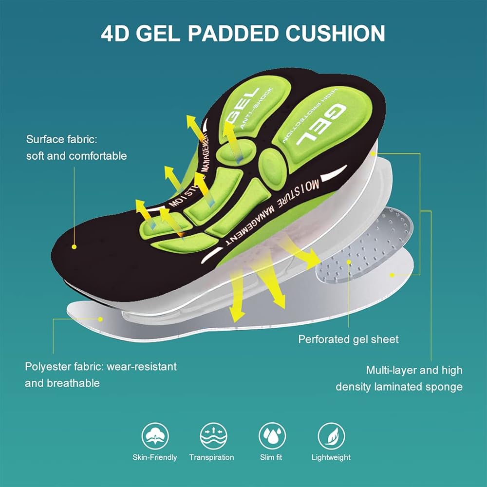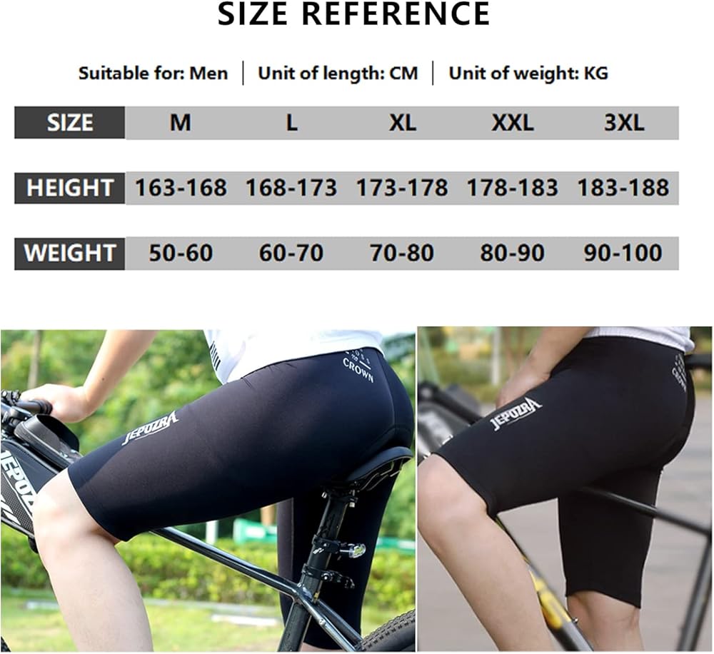 • Functional Cushion: The cycling shorts are made from 5 layers of high-density 3D simulated foam pressed to fit securely to all the curves of your bike seat while riding, effectively reducing wear and tear, absorbing vibrations and protecting the hips and sensitive areas. These cycling shorts for men will relieve pressure or discomfort on the hips during long rides.