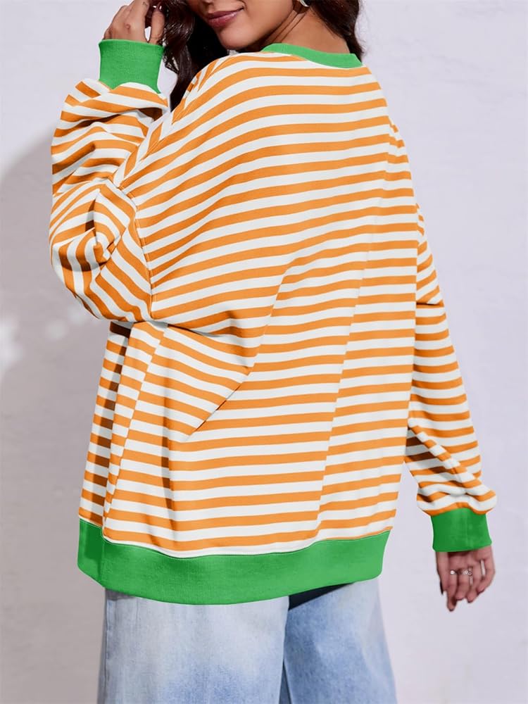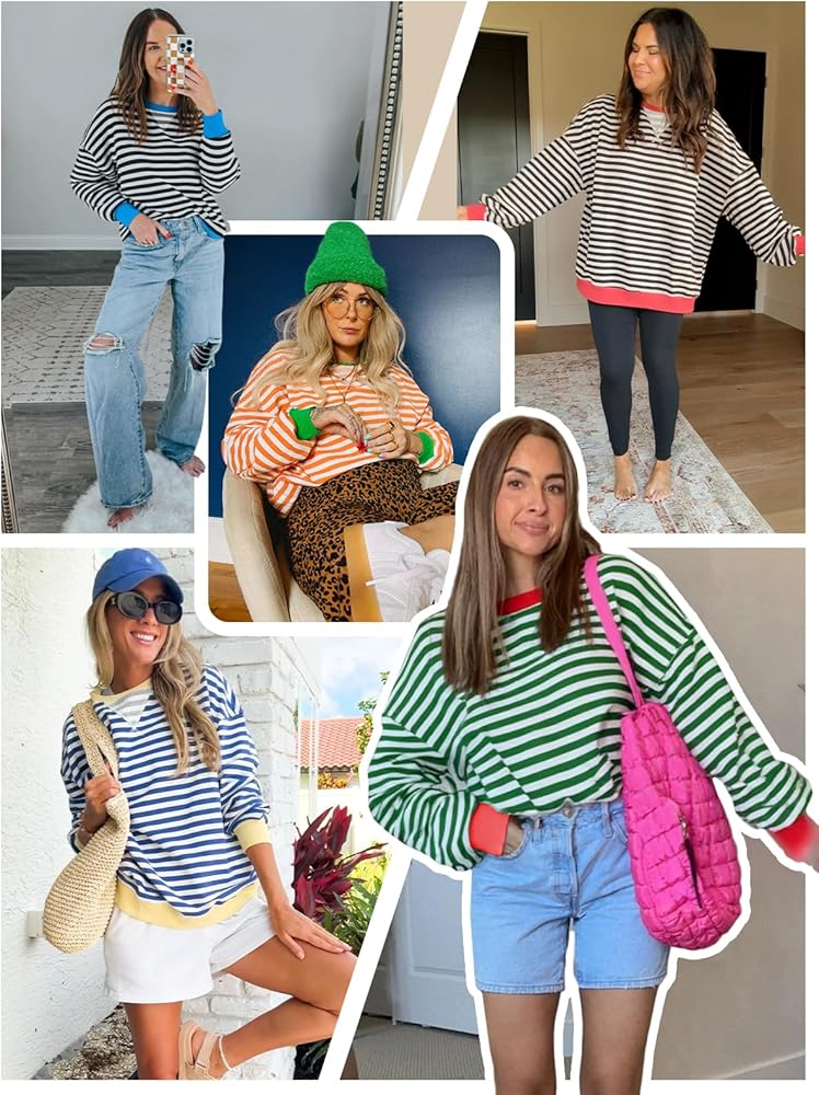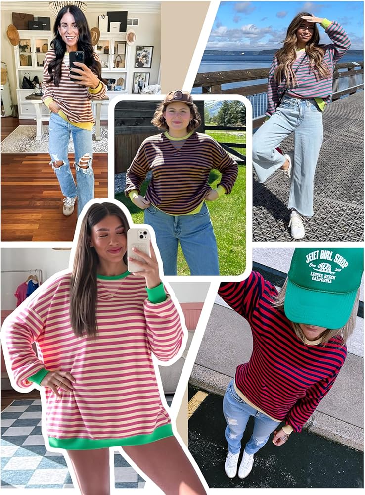 【What Material We Use】: We believe in providing our customers with the best quality products. Women oversized striped sweatshirt is made of high quality cotton blend, it is super soft, stretchy, breathable and skin-friendly, to keep you comfortable and relaxed all day, suitable for Spring, Summer and Autumn.