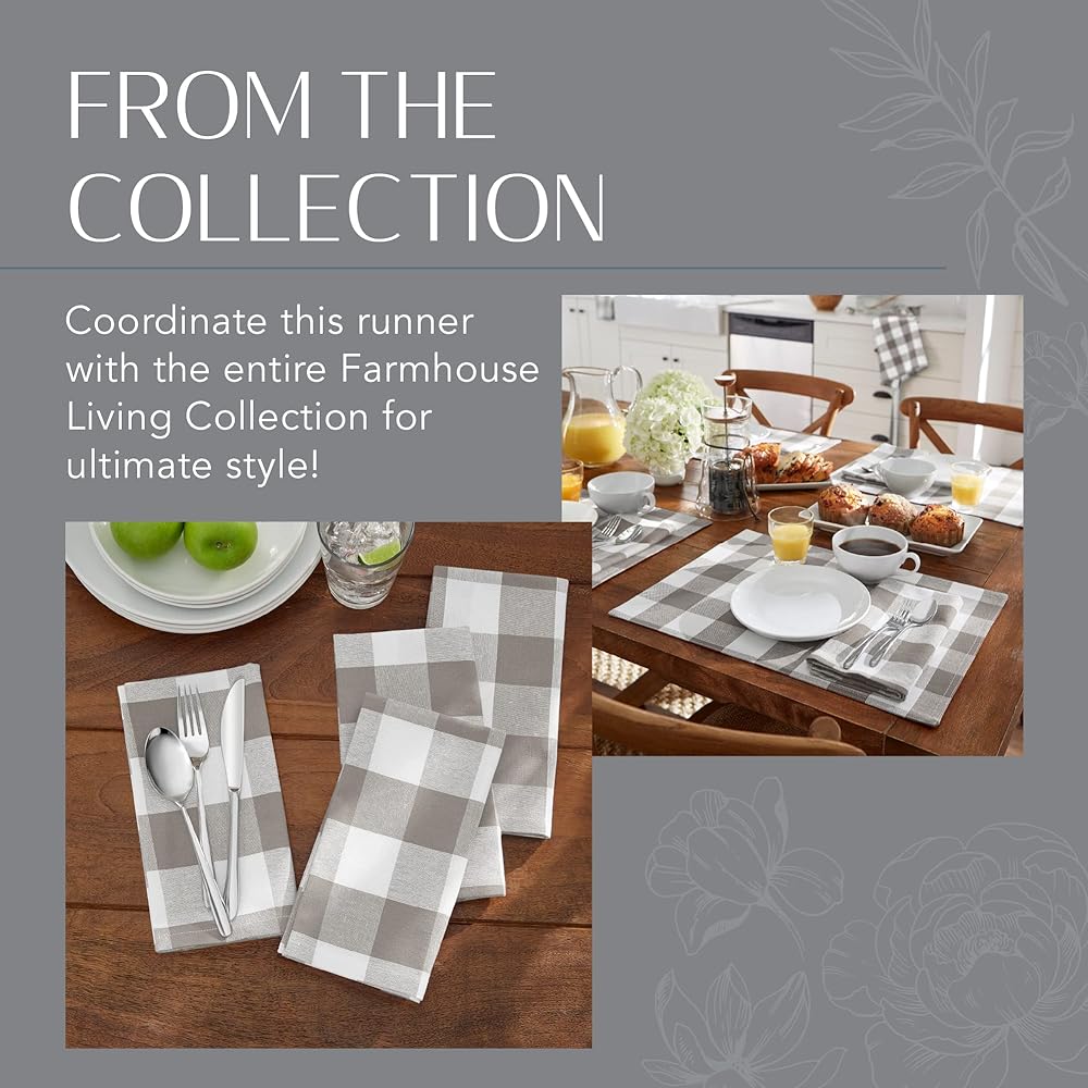• BUFFALO-CHECK TABLE RUNNER: Whether you need harvest-themed decor or classic table-setting accessories, the Farmhouse Living Buffalo-Check table runner adds shabby-chic beauty to every occasion.