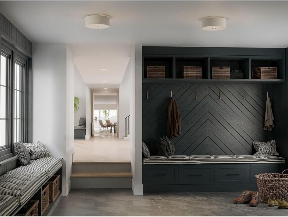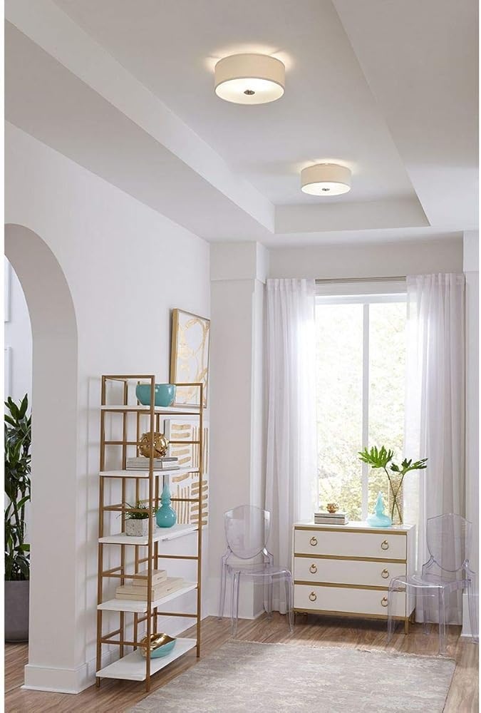STYLISH CEILING LAMP DESIGN: Seamlessly fits within modern, updated traditional, farmhouse, and transitional interiors; The off white shade on the flush light fixture gives a natural look for a wide variety of locations
