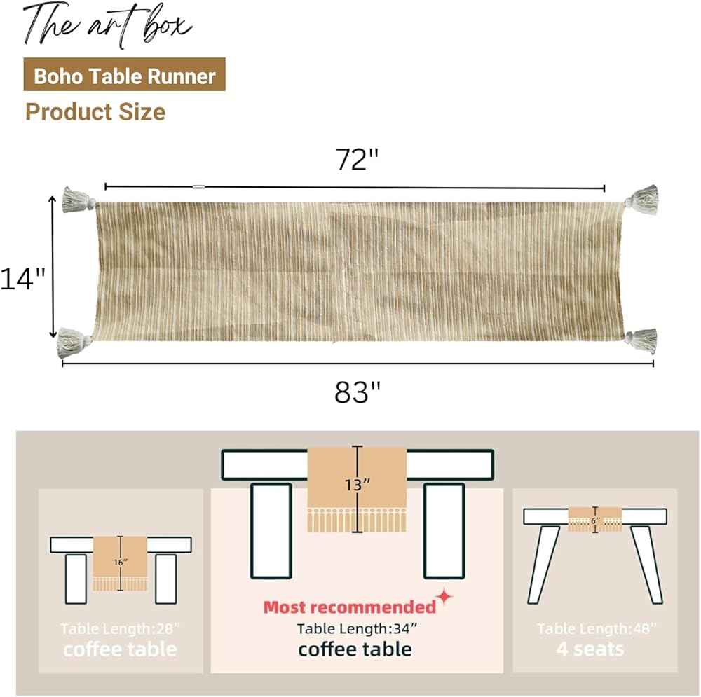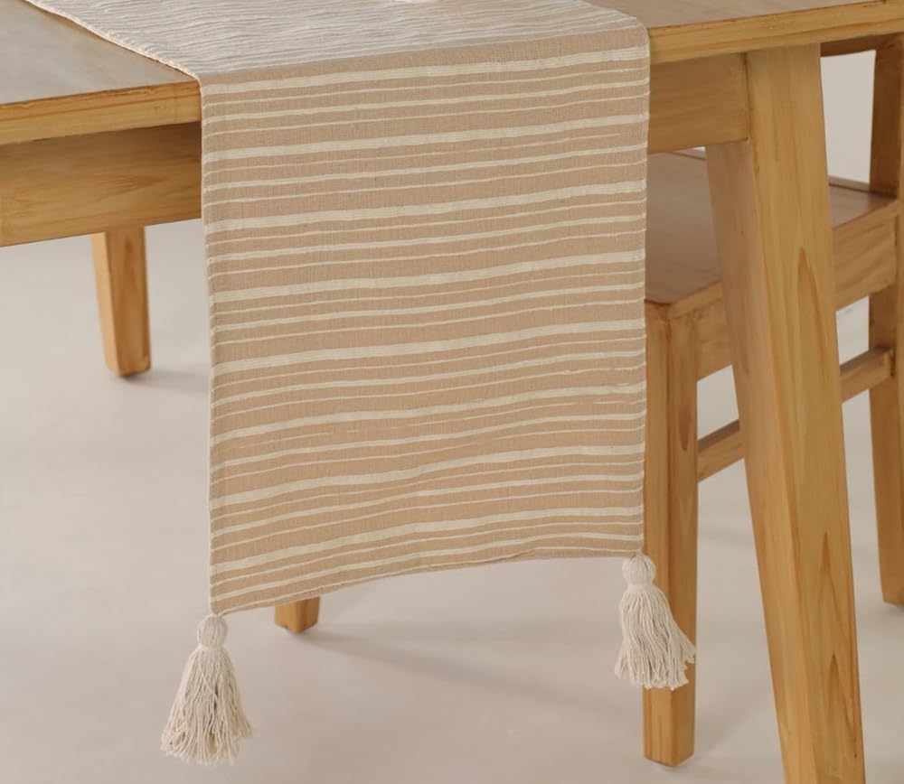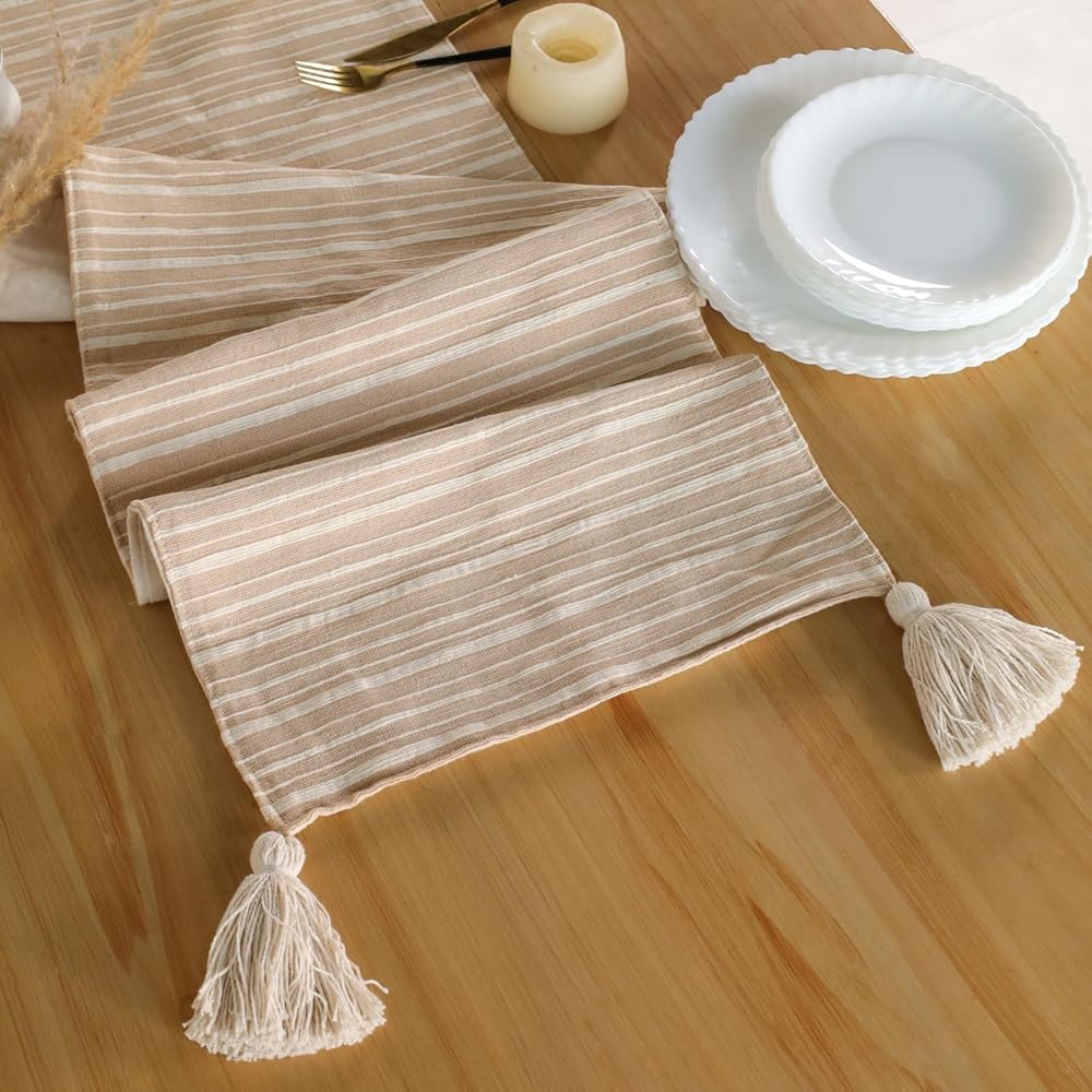 [Perfect 72 Inches Long] Our textured table runner with tassels measures 14 x 72 inches, making it ideal for dining tables that seat 4-8 people. Achieve a rustic and boho look effortlessly.