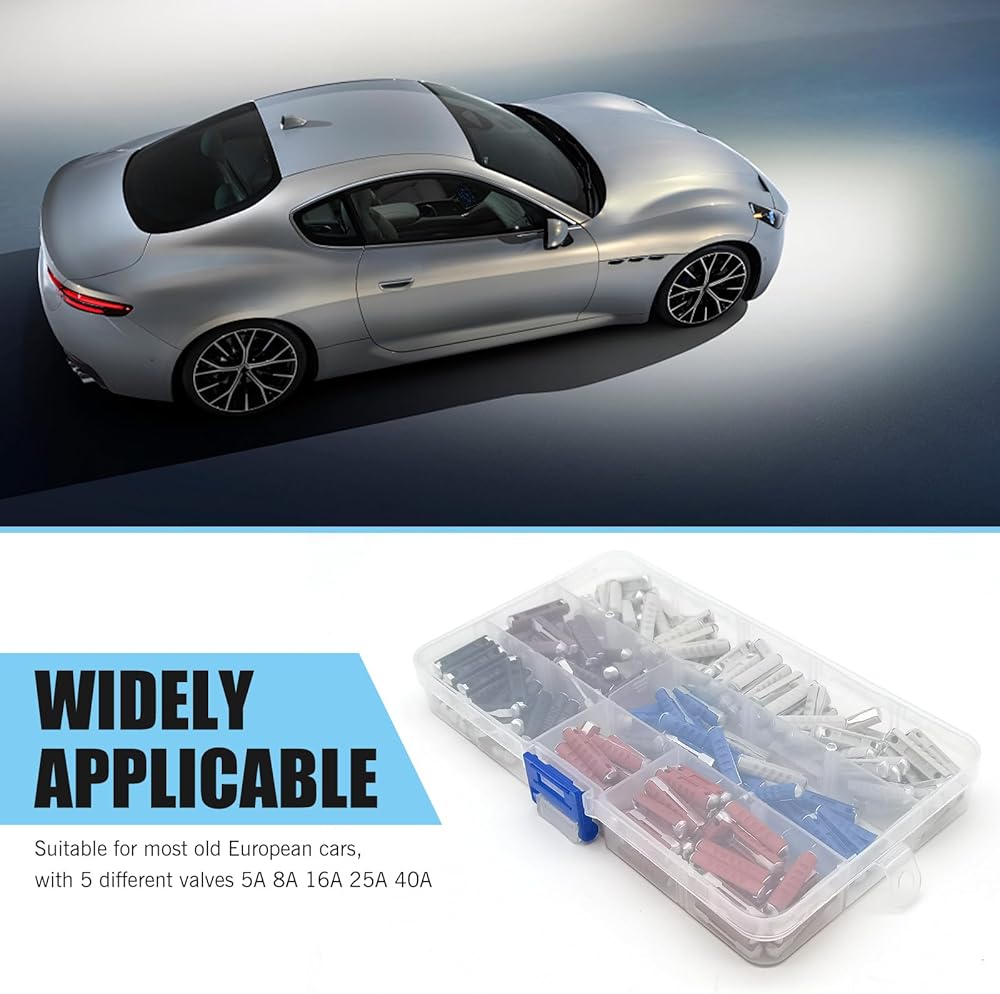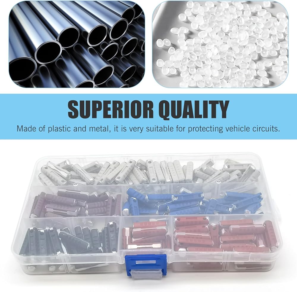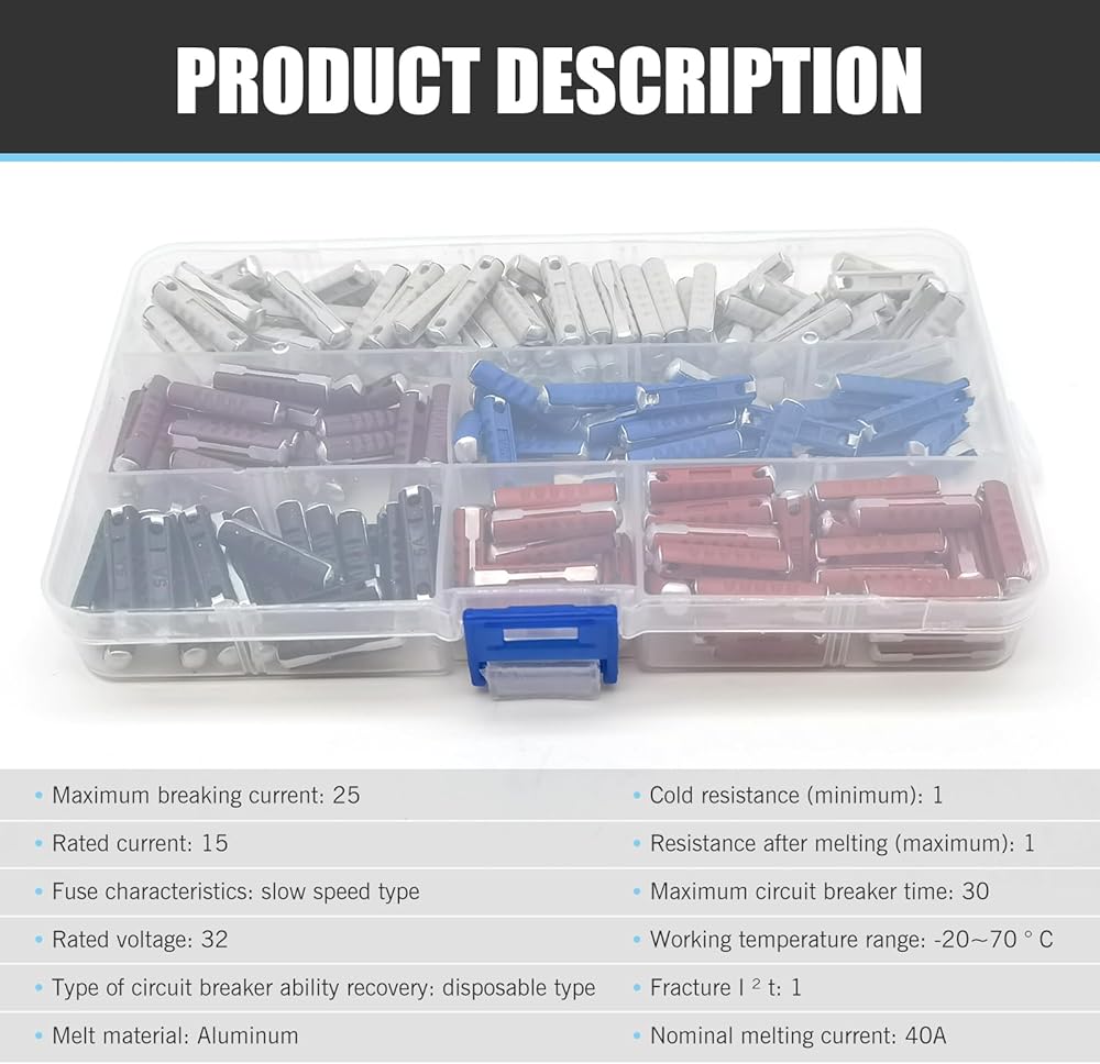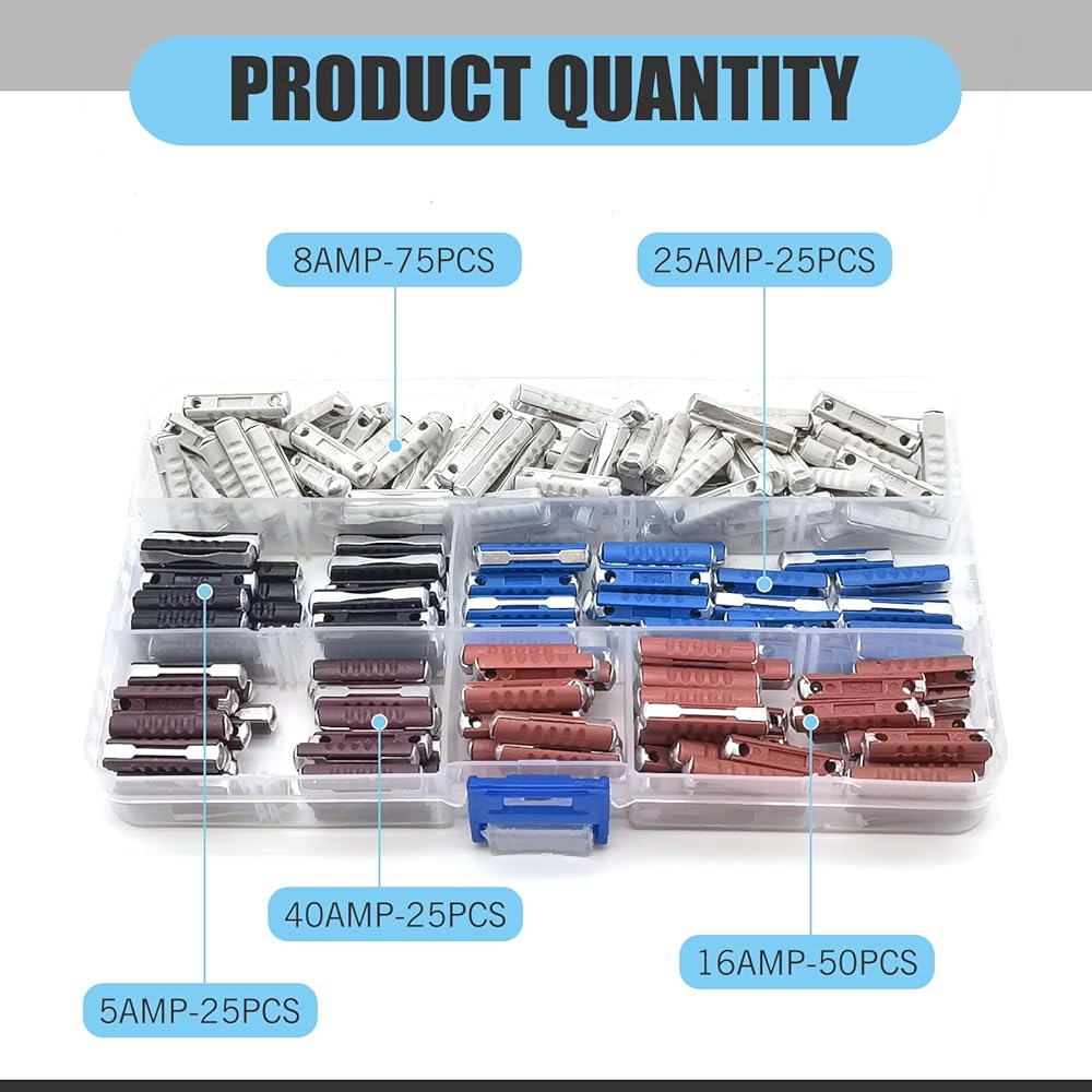 Box Contents: You will receive a car torpedo fuse assortment kit, including 25 5A fuses, 75 8A fuses, 50 16A fuses, 25 25A fuses and 25 40A fuses. The product has a smooth surface without burrs and fine craftsmanship. The product is small and portable, so you can use it at any time.
