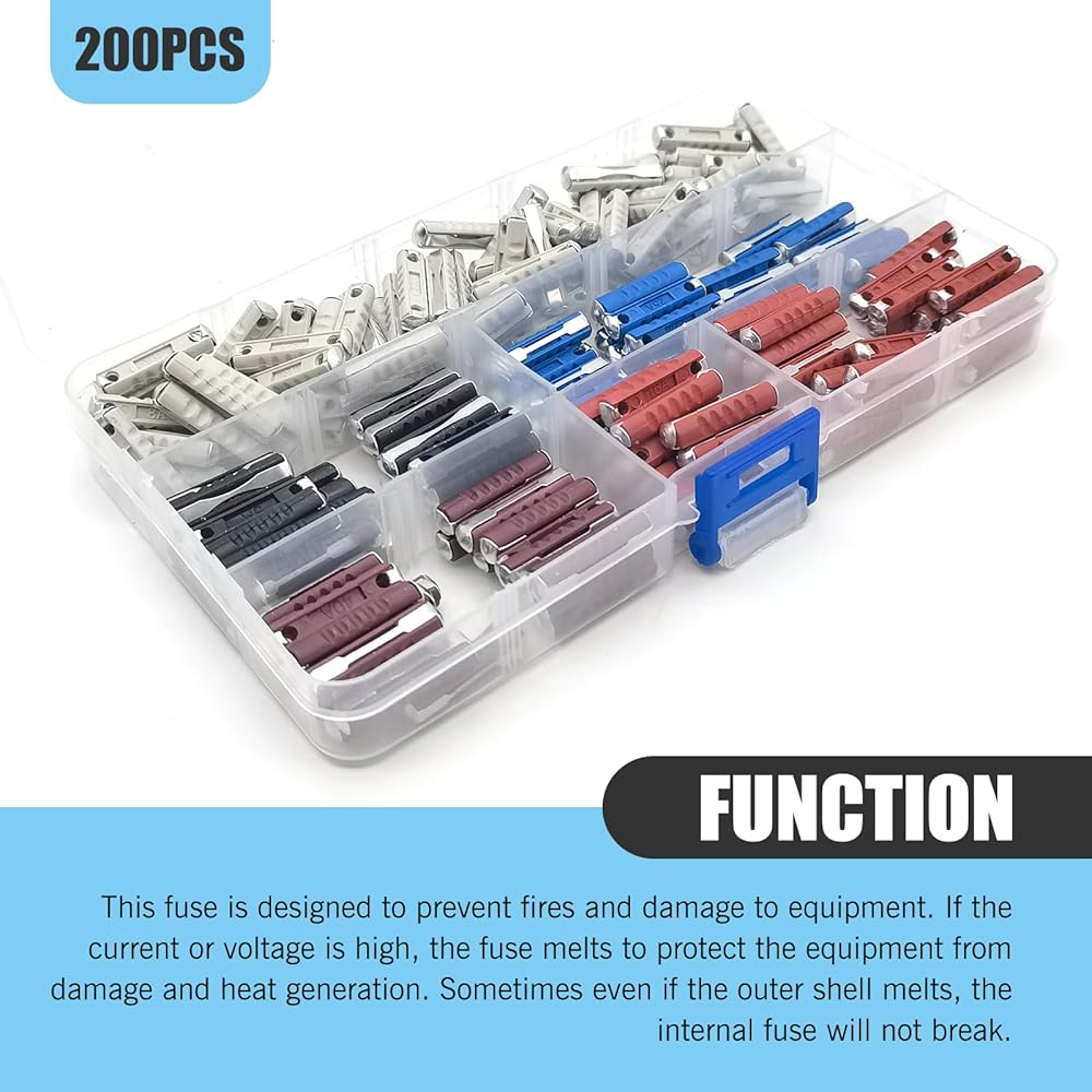 pinflaw 200 PCS Car Torpedo Fuse Assortment Kit, 5A/8A/16A/25A/40A Slow Blow Alloy Pin PP Shell Fuse, Multi-function Replacement Modification Accessory, Suitable for Most Cars (Multicolored)
