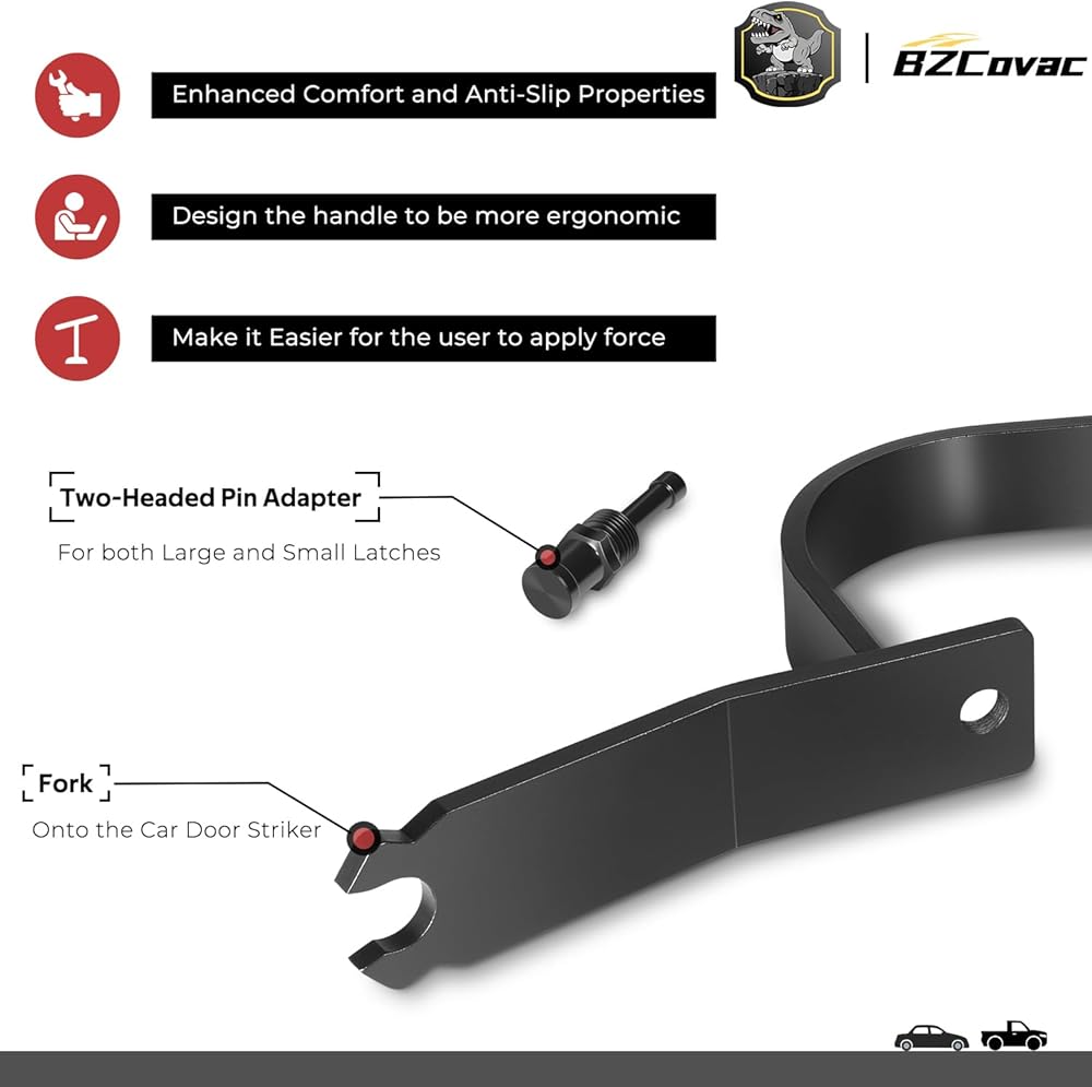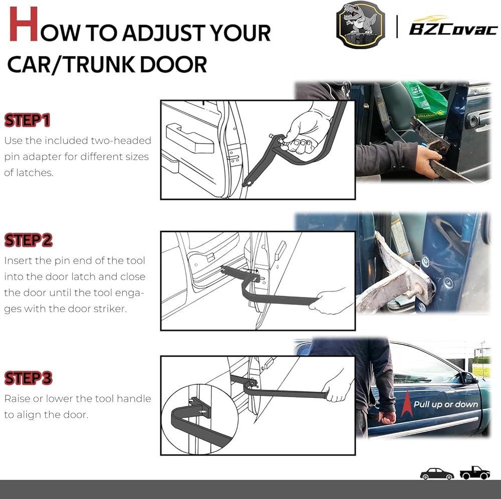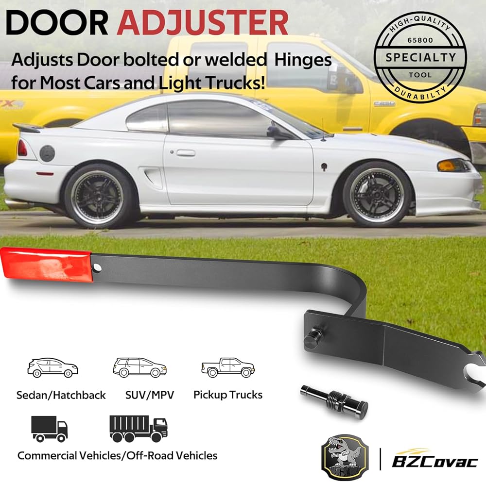 Simple to Use - The 65800 alignment tool can adjust doors with either bolted or welded hinges. Simply slide the pin end of the tool into the door latch and close the door until the tool engages the door striker. Then, raise or lower the tool handle to align the door. It comes with a two-headed pin adapter for both large and small latches. The specially designed handle provides optimal leverage, making adjustments fast and easy
