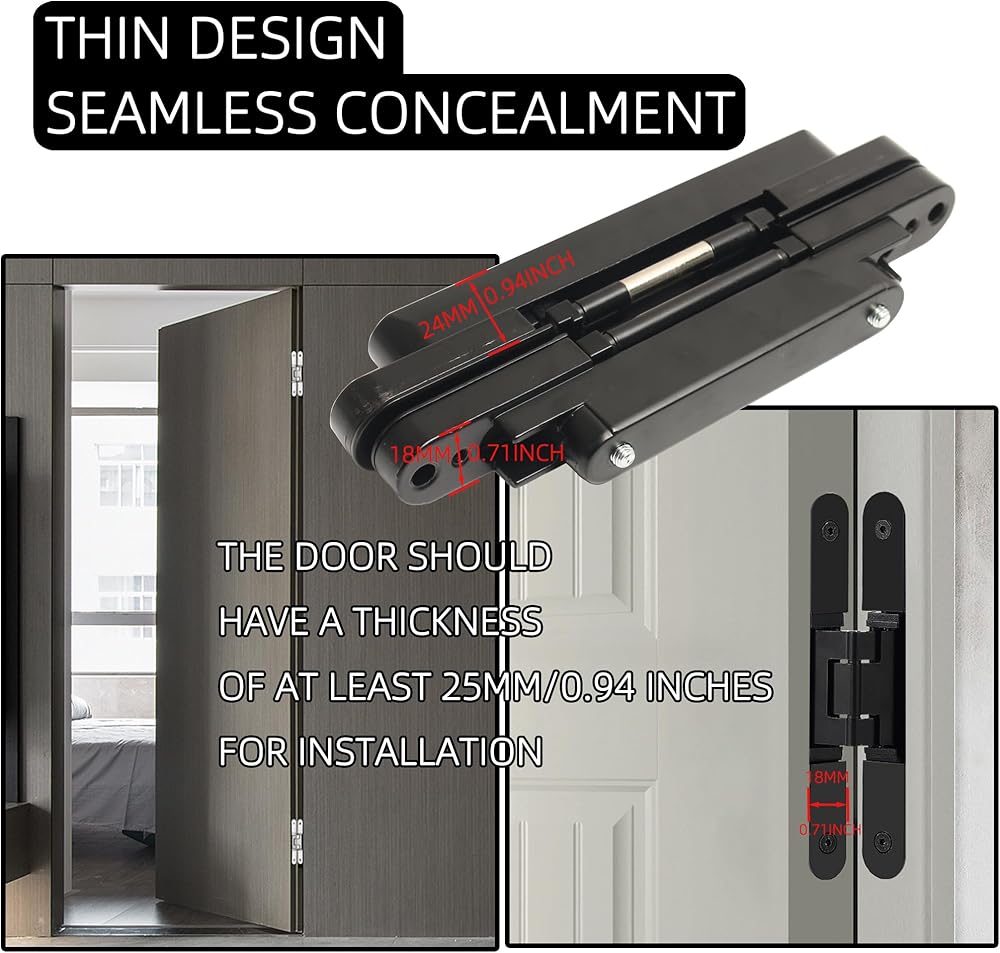 مفصلات الباب الخفية الفائقة المخفية مفصلية غير مرئية ، وسبائك الزنك 180 درجة مؤخرة ، 3 طرق قابلة للتعديل مفصلية مع مسامير أسود 2 pcs