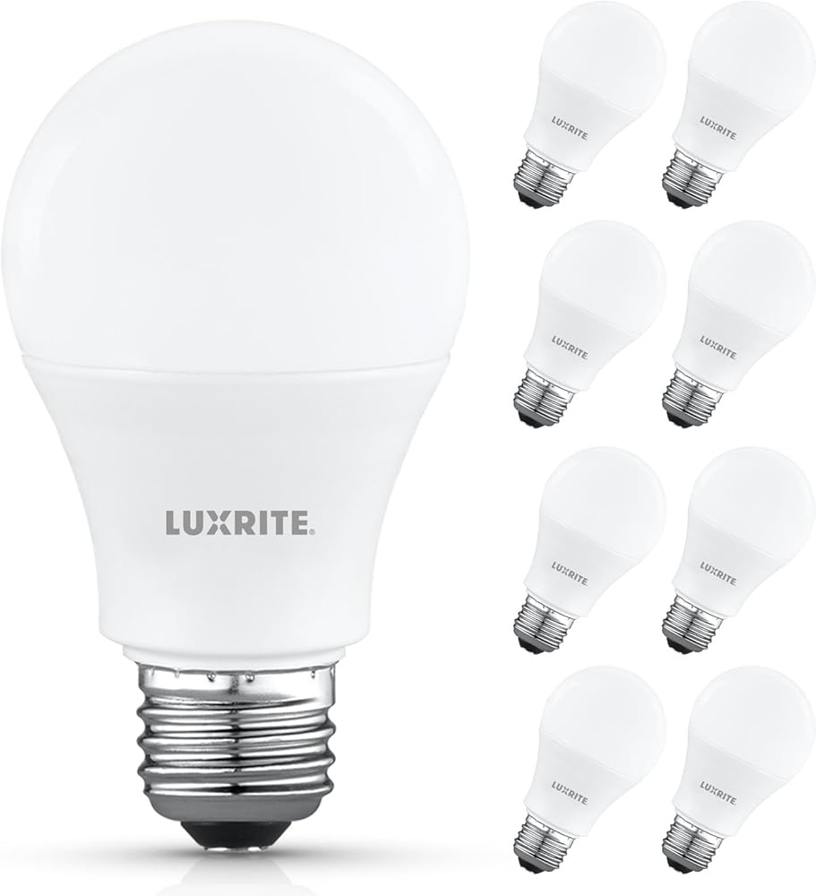 Luxrite A19 مصباح LED LED 60 واط مكافئ ، غير قابلة للوقت ، CRI80 ، 3500K أبيض طبيعي ، 800 لتر ، مصابيح مصباح LED القياسية 8W ، قاعدة E26 ، التثبيت المرفق ، مصنفة رطبة ، ETL مدرجة (8 حزمة)