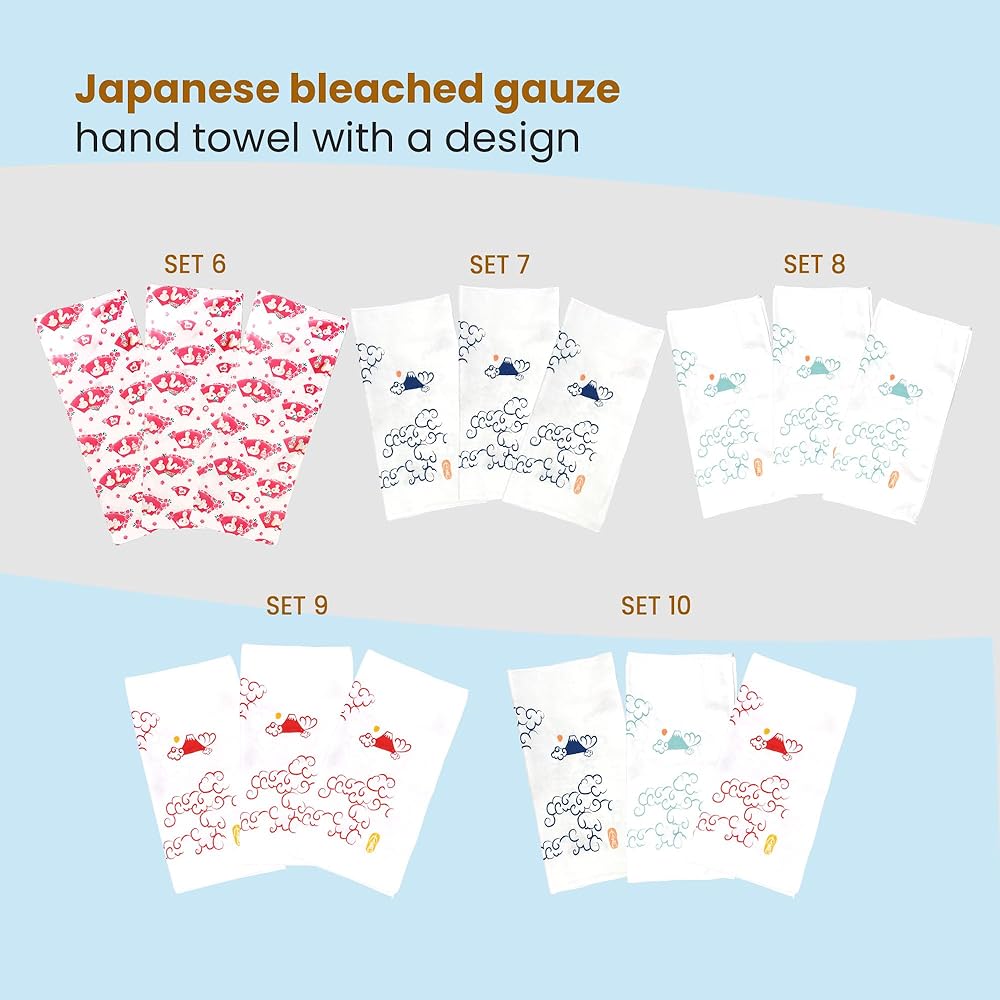 Set includes 3 Tenugui towels made of 100% cotton, sourced and crafted in Japan