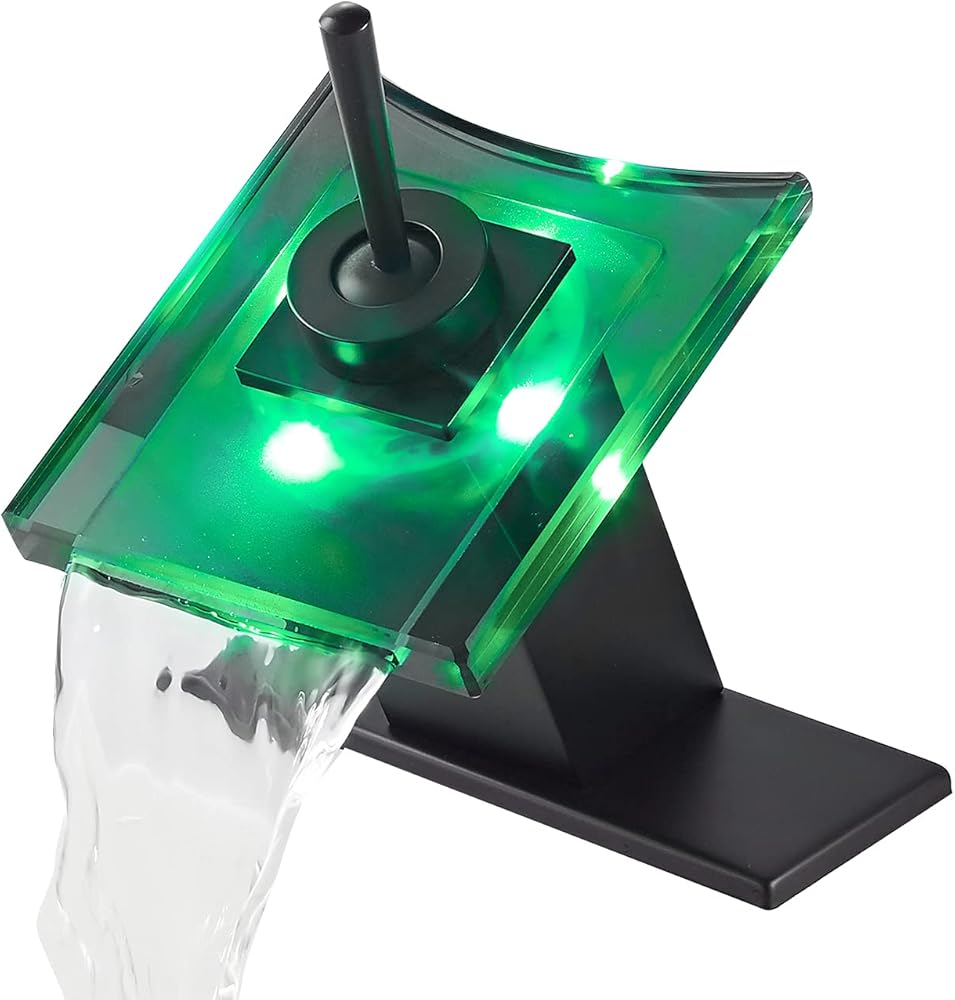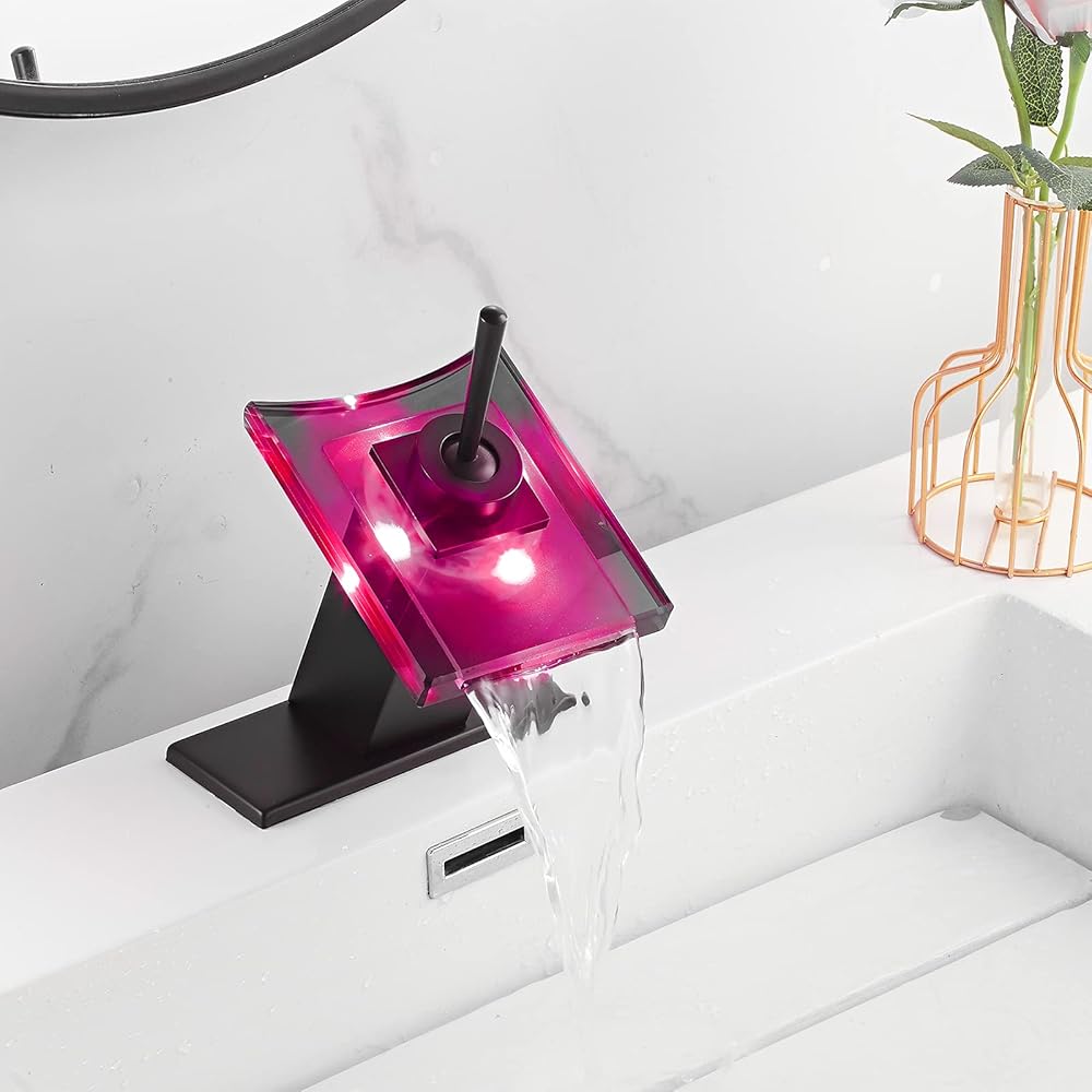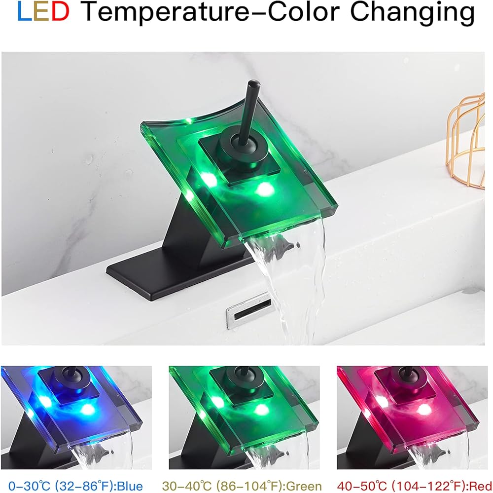 【صنبور زجاج شلال】 4.4 بوصة ، يوفر صنبور شلال عريض شلالًا لطيفًا في الحوض ويعرض الجمال الطبيعي للمياه المتدفقة ، مع تغيير ألوان مصابيح LED ، فإن تدفق المياه أكثر جاذبية