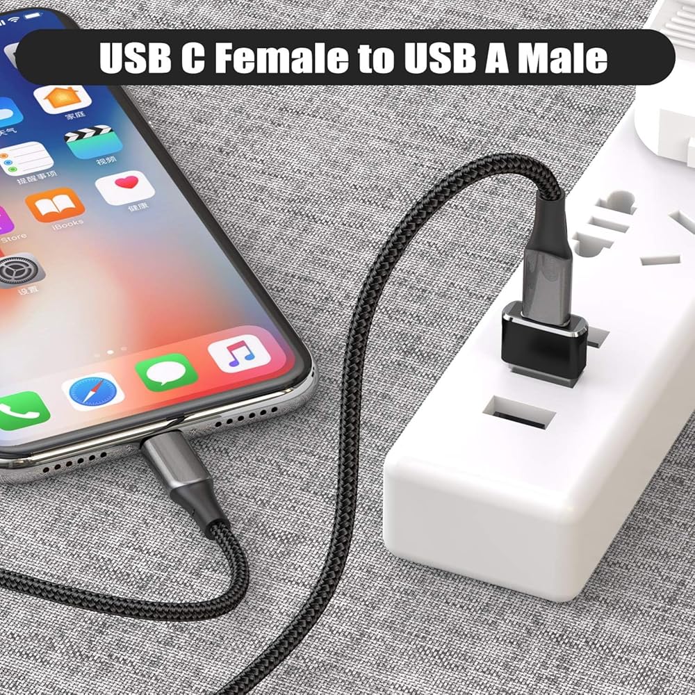 Basesailor USB C Female to USB Male Adapter 3Pack,Type A Charger Cable Connector for iPhone