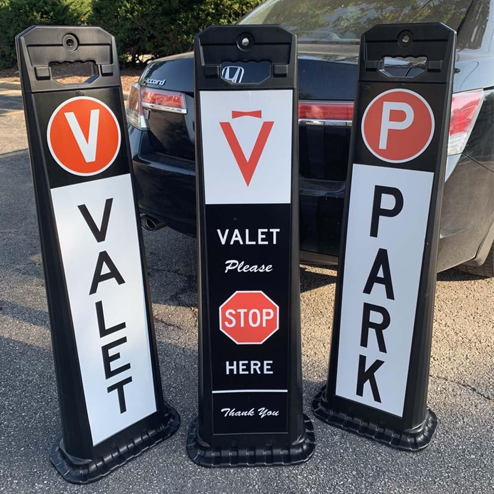 بلاستيك 45 "مجموعة علامات وقوف السيارات العمودية مع 20 رطلاً ، قاعدة مطاطية ،" فاليت سهم "، قابلة للتكديس ، تصميم مساحة للبناء ، مواقف السيارات والمدارس ، مصنوعة في الولايات المتحدة الأمريكية