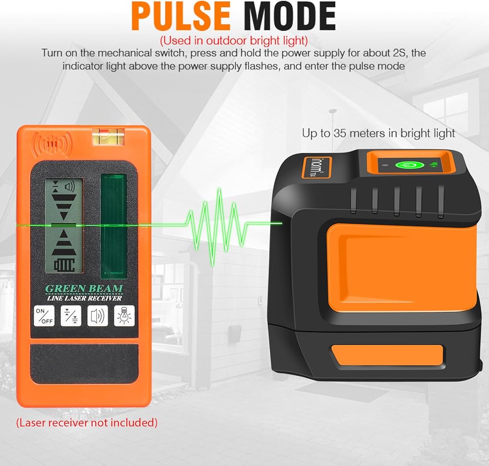Extended Range and Portability: Activate the pulse mode with a simple press to extend the range when paired with a laser receiver (sold separately). This self-leveling laser also comes with a convenient carrying case, making it easy to transport and protect your line laser tool, ensuring it's always ready for your next project.