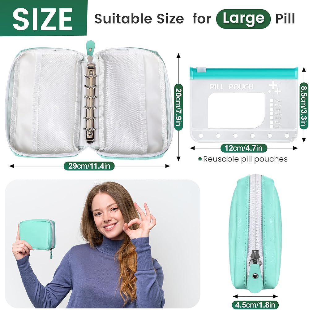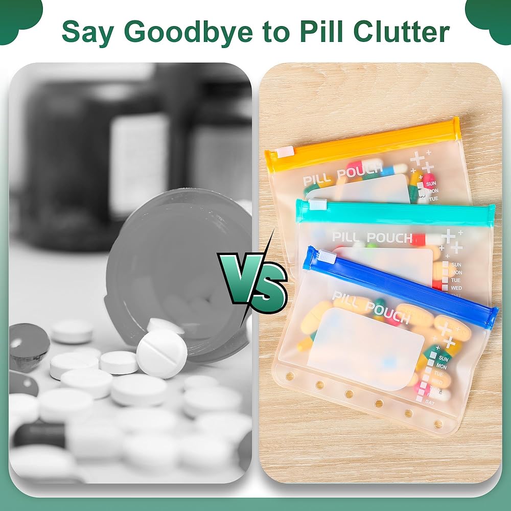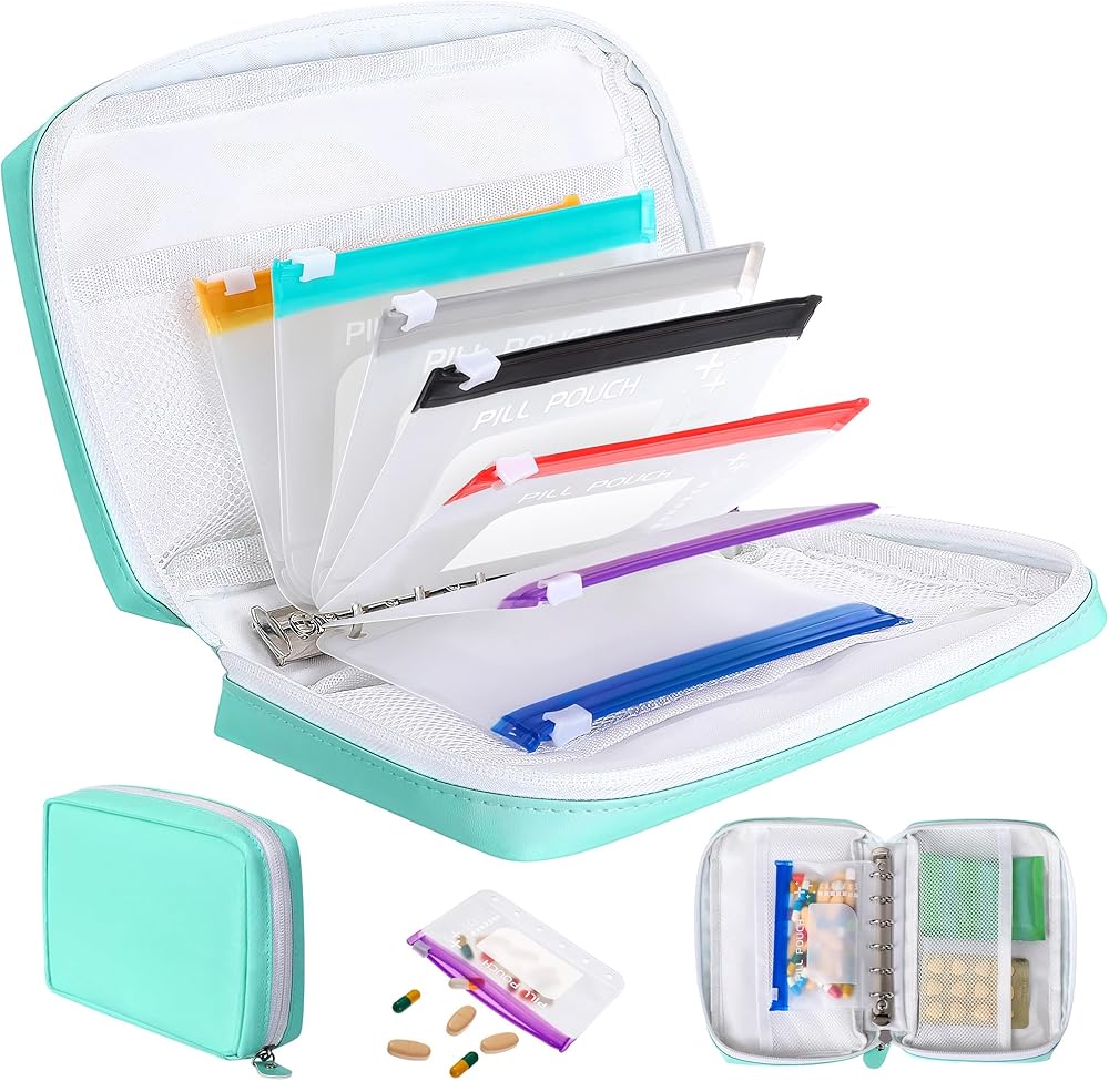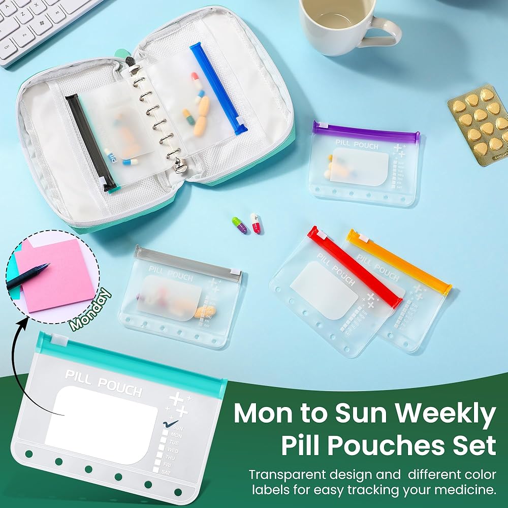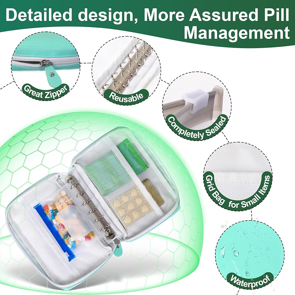 LOOSE LEAF DESIGN: The pill storage bag adopts a binder design inside, which can be applied to reorganize the pill bags or take out unapplied pill bags as needed. At the same time, it is convenient to disassemble each applied pill bag for cleaning and reuse. The medicine organizer offer greater flexibility, a perfect replacement for traditional pill case