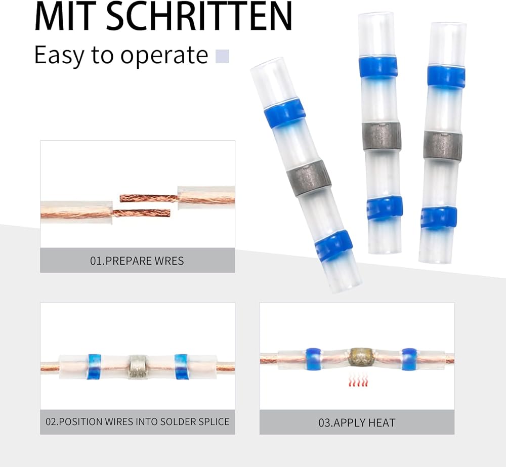 Material: Made with specialized wire connector materials to prevent melting of the shrink tubing before soldering, ensuring reliable quality
