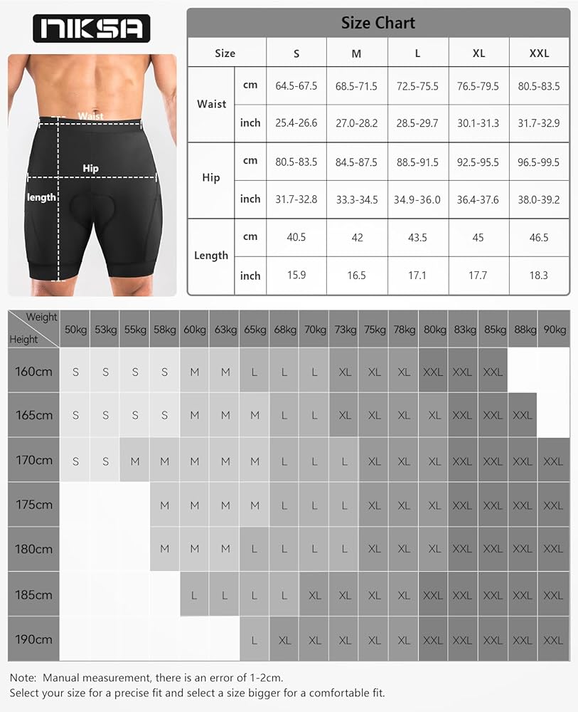 شورت Niksa للدراجات الرجال ، الطريق ثلاثي الأبعاد على الطريق وسروال دراجة جبلية ، تنفس وجاف سريع مع 3 جيوب دورة قصيرة xx-large أسود