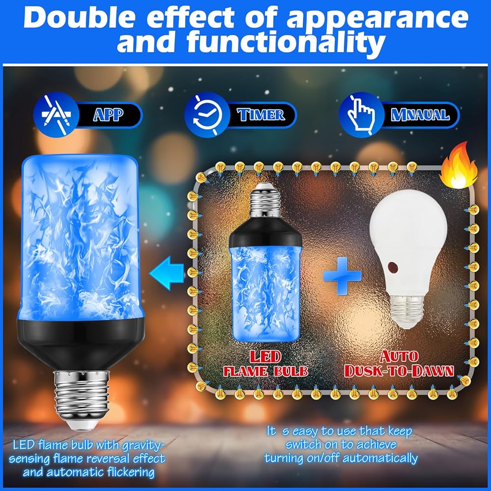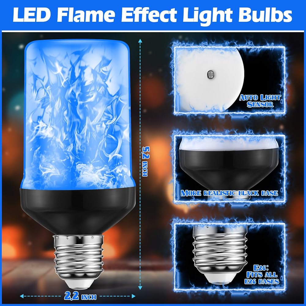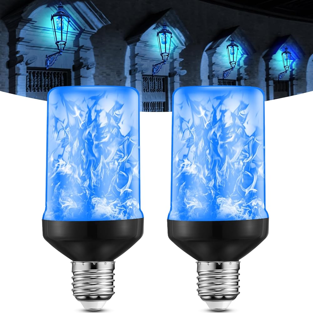 Retisee LED تأثير اللهب المصابيح ، الغسق إلى لمبة مستشعر الفجر مع قاعدة E26 ، اللهب المتسلق مع التأثير رأسا على عقب ، لمبة النار في عيد الهالوين ، شرفة عيد الميلاد الشرفة في الهواء الطلق (الأزرق ، 2 عبوة)