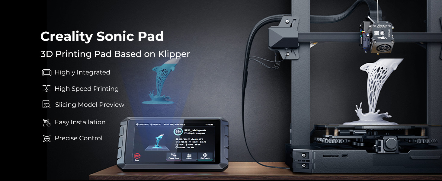 CREALITY SONIC PAD استنادًا إلى برنامج KLIPPER الثابتة 7 بوصة اللمسات اللمسة ثلاثية الأبعاد وسادة ذكية مع سرعة طباعة أعلى لـ Creality Ender 3 Pro/Ender 3 V2/Ender 3 V3 SE/Ender 3 S1 Series الطابعات 3D