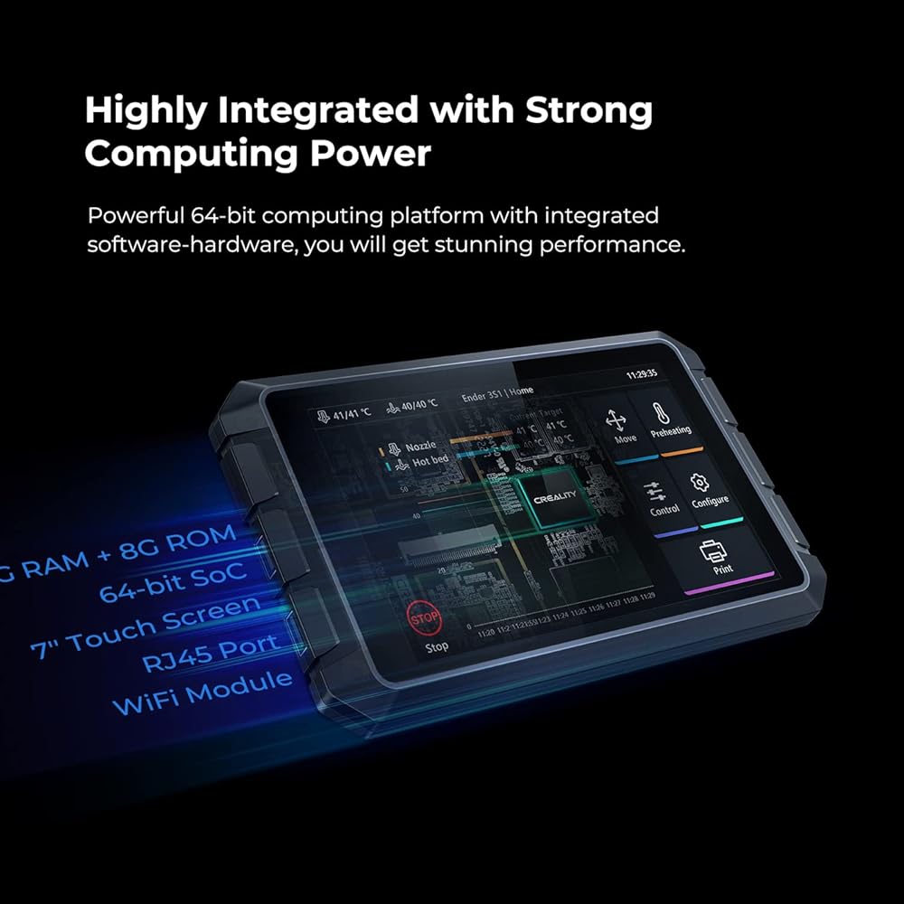 【متكامل للغاية مع قوة الحوسبة القوية】 تحت شاشة التحكم الكبيرة التي تعمل باللمس بحجم 7 بوصات ، تعمل البرامج الثابتة Klipper على قدم وساق على منصة حوسبة قوية 64 بت. مع تكامل برامج البرامج ، ستحصل على أداء مذهل. ترقية OTA & USB ، يمكن ترقية Creality Sonic Pad OS عبر الإنترنت عبر OTA أو غير متصل عبر قرص USB.