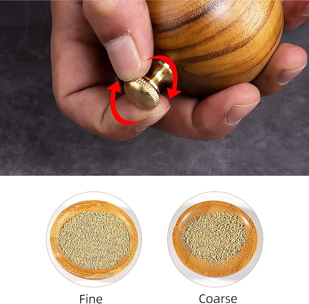 EASY TO USE,ONLY 4 STEPS:Unscrew the top of the knob, open the the top cover; Fill the peppercorn into the bottle; Adjust the screw as required; Turn clockwise to create pepper powder.
