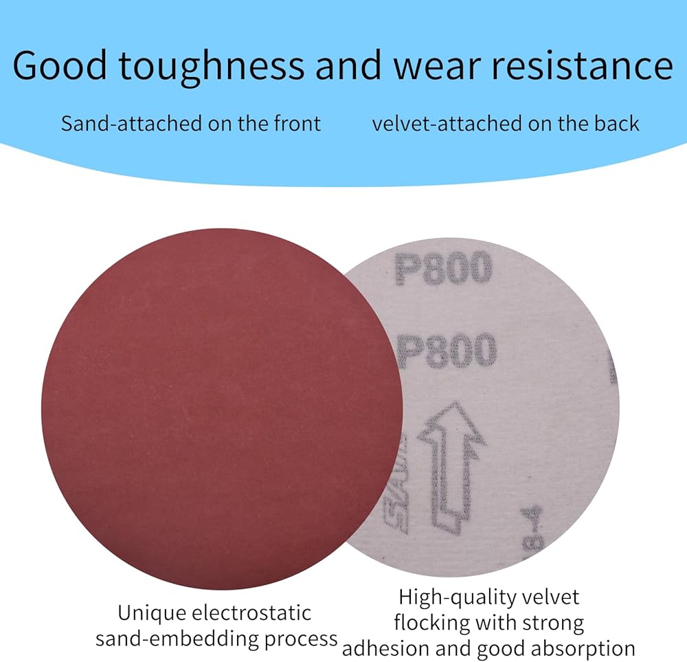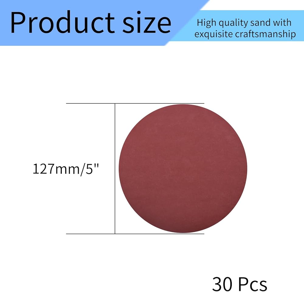 YXQ 800Grit Sanding Discs 5 inch NO-Hole Hook and Loop Sandpaper Cloth Adhesive Red (30Pcs)