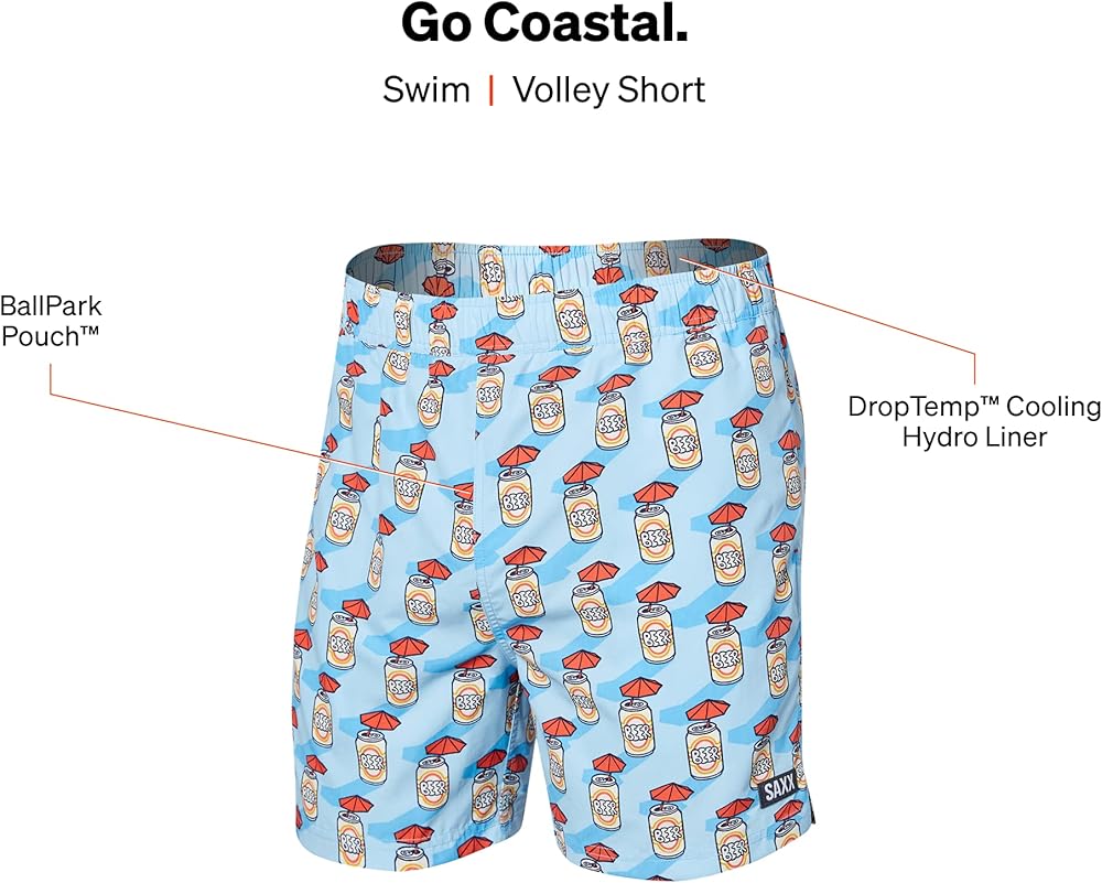 SAXX Men's Underwear - Go Coastal 2N1 Volley 5" with Built-in Pouch Support - Swim Short for Men, Spring
