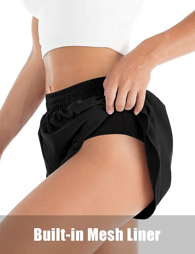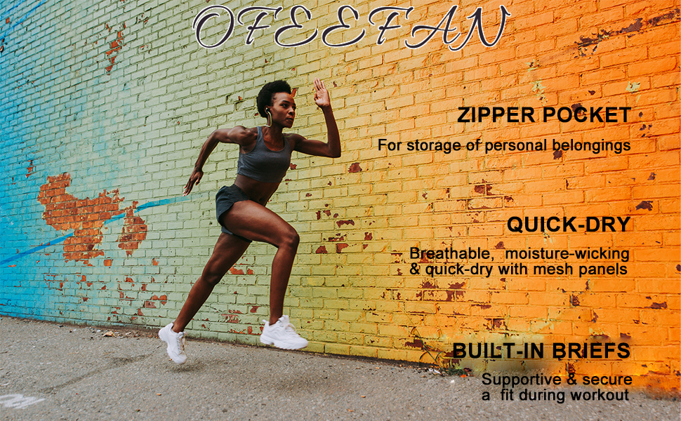 OFEEFAN 2.5 '' WOKOUT WOKOUT للسيدات الجري مع السراويل القصيرة مع جيب شبكة الجفاف جاف