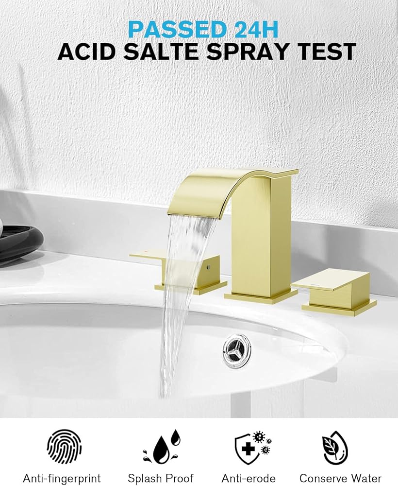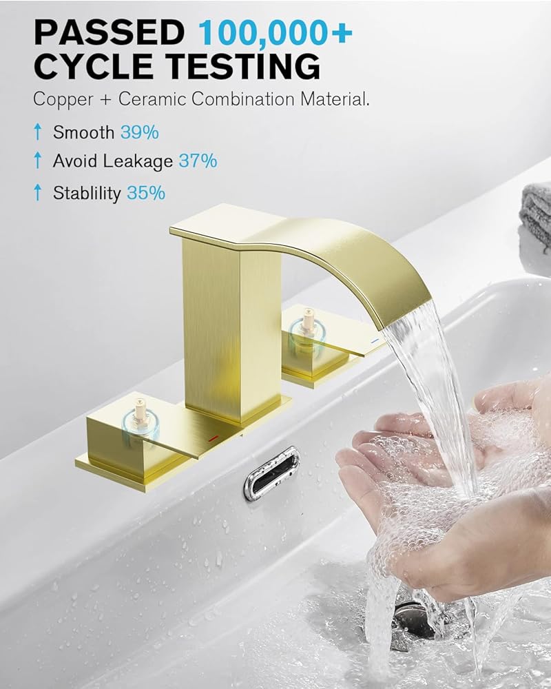 • حنفيات الحمام الشلال: تحتوي الحنفيات على تصميم فريد من نوعها على براءة اختراع ، ويتميز صنبور الحمام هذا برنانة واسعة توفر سلسلة لطيفة ، مما يحاكي التدفق الطبيعي الخالي من الشلال. إن النداء المرئي لهذا التصميم الفريد ، إلى جانب وظائفه ، يجعله إضافة رائعة إلى حمامك.