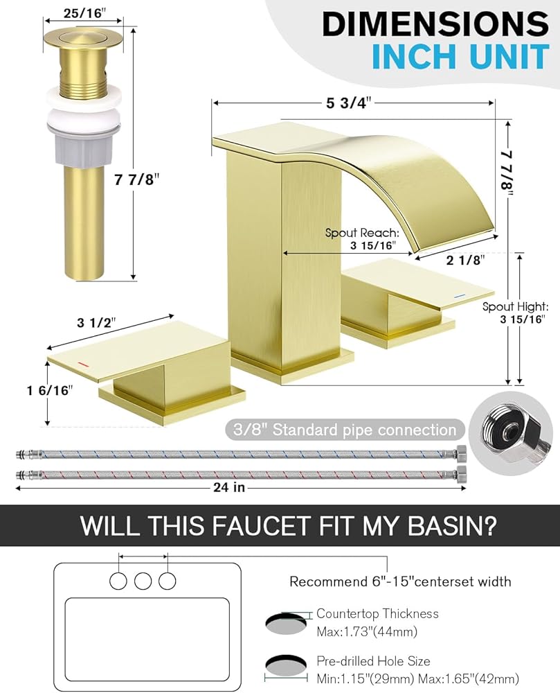 • تسهيل التثبيت في 15 دقيقة: صنبورنا بحجم 4 بوصات مناسب للمصارف أو العدادات مع 2 أو 3 ثقوب. يبلغ قطر ثقب التثبيت 0.85-1.38 بوصة ، وسمك سطح السفينة القصوى هو 1.2 بوصة. ويشمل جميع أجهزة التثبيت وخطوط الماء الساخن/البارد ، مما يلغي الحاجة إلى سباك وتوفير الوقت والمال.