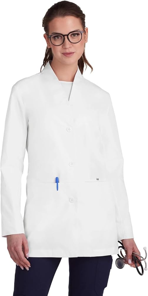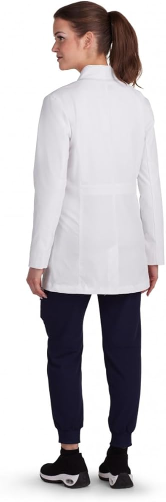 This luxurious and lightweight koi Scrubs Essentials women's lab coat is tops in style, comfort and functionality. Modern classic fit.