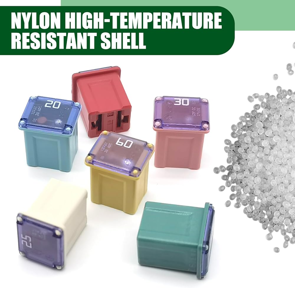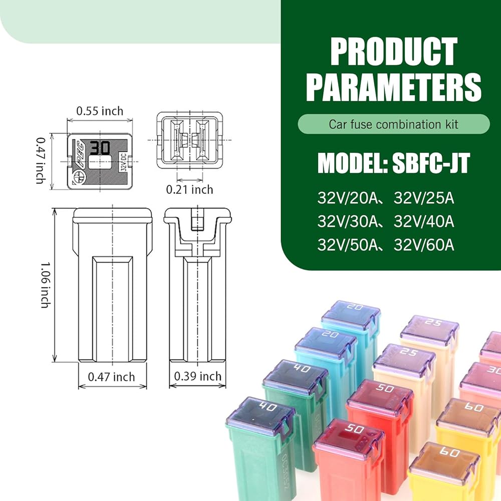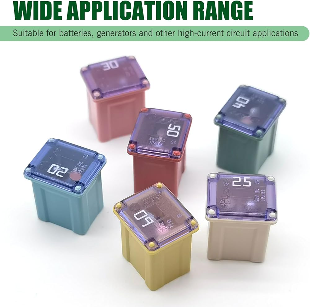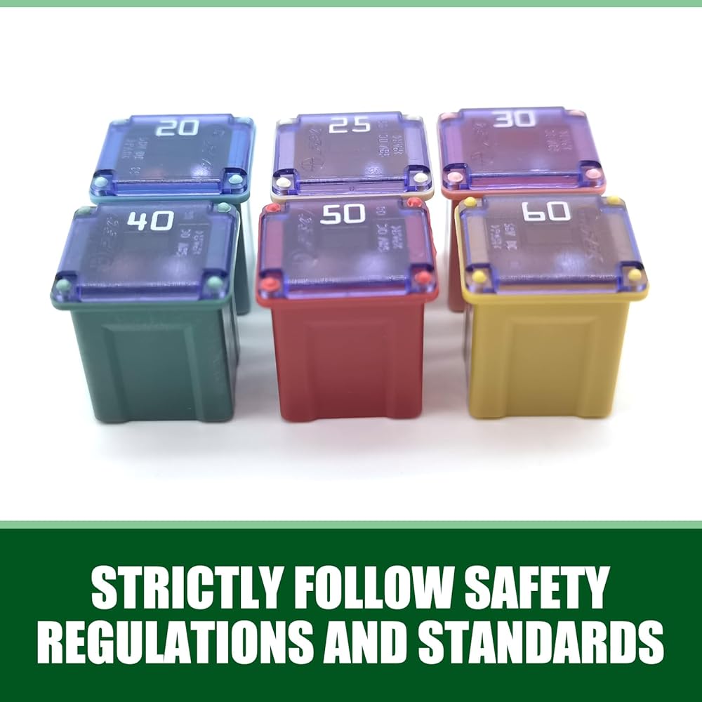 Packing Details: You will receive six 1.06 " x 0.47 " x 0.39 " square automotive blade fuses with current ratings of 20A/25A/30A/40A/50A/60A. Different specifications meet your usage needs.