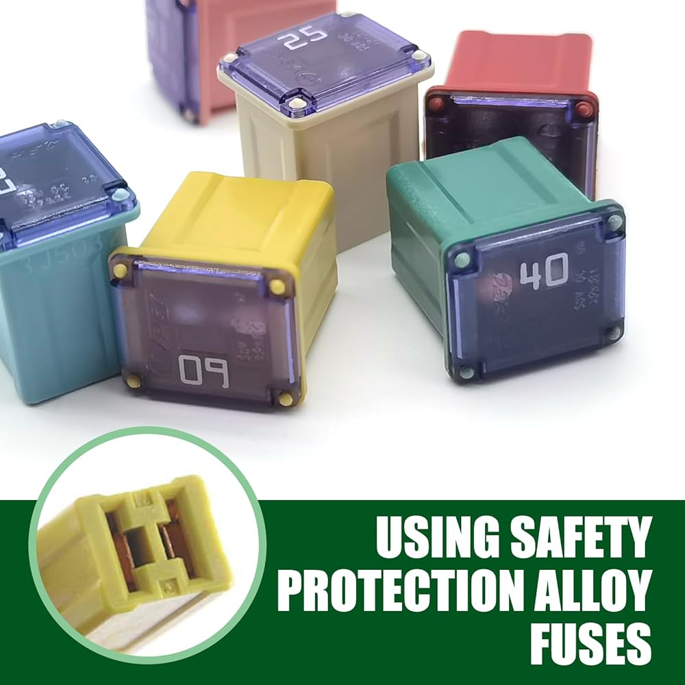 Rated Current: The kit offers a variety of rated current options, including 20A, 25A, 30A, 40A, 50A and 60A. The appropriate fuse can be selected according to the needs of the vehicle's system to protect the circuit from overload and short circuit.