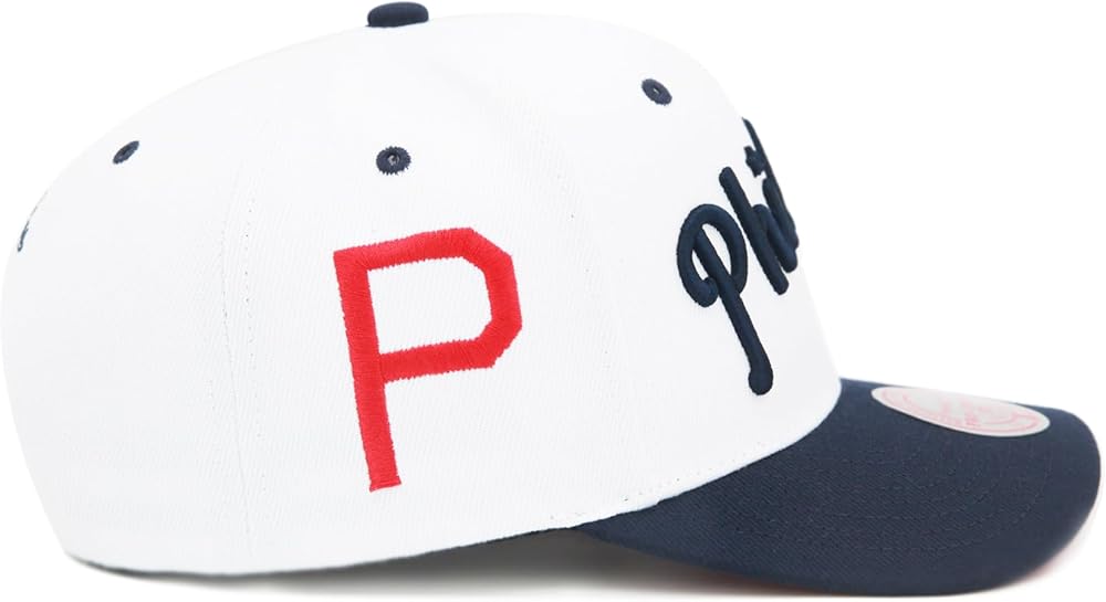 Show off your baseball fandom in style with our Mitchell & Ness Philadelphia Phillies Cooperstown MLB Evergreen Pro Snapback Hat. This pre-curved cap, available in an eye-catching white/Navy/Red color scheme, offers a vintage-inspired design that celebrates the storied history of the Phillies. Perfect for avid collectors, Phillies fans, or those who appreciate retro aesthetics, this hat provides both comfort and style. The distinct Phillies logo is boldly featured on the front, allowing you to display your team pride wherever you go. Whether you're heading to the game, out with friends, or simply need a stylish accessory for your casual wardrobe, this snapback hat is the perfect choice. Elevate your MLB gear with this classic Cooperstown collection piece.