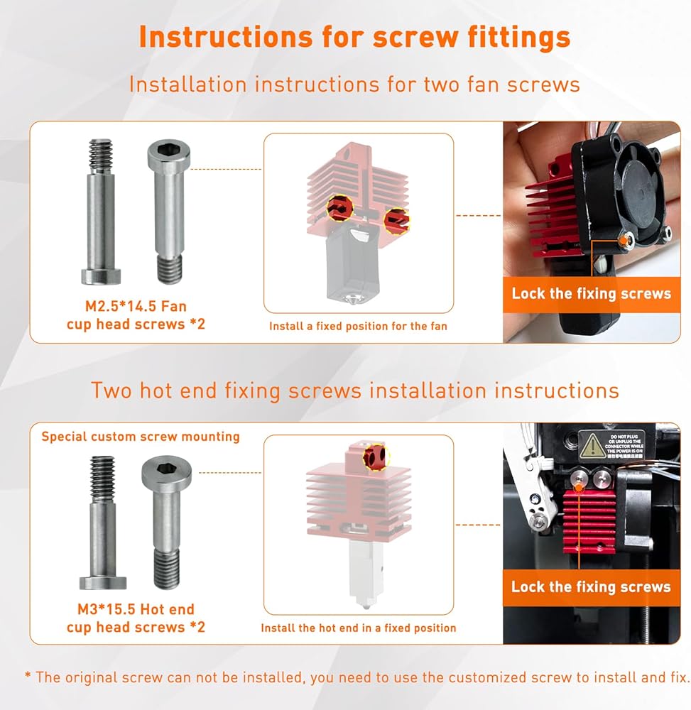 - Warm reminder: this hot end needs to be equipped with screws in order to be used properly, no screws can not be installed and used!