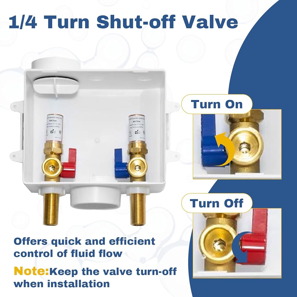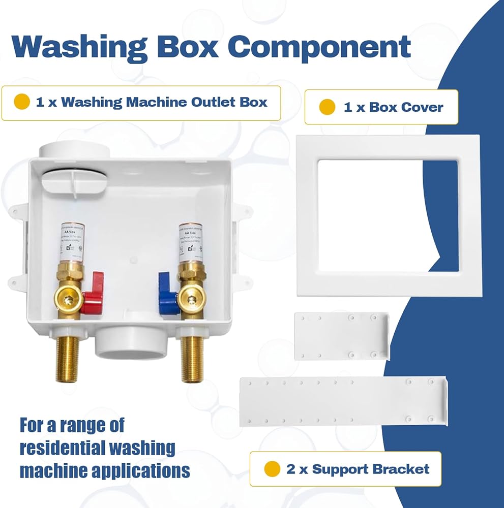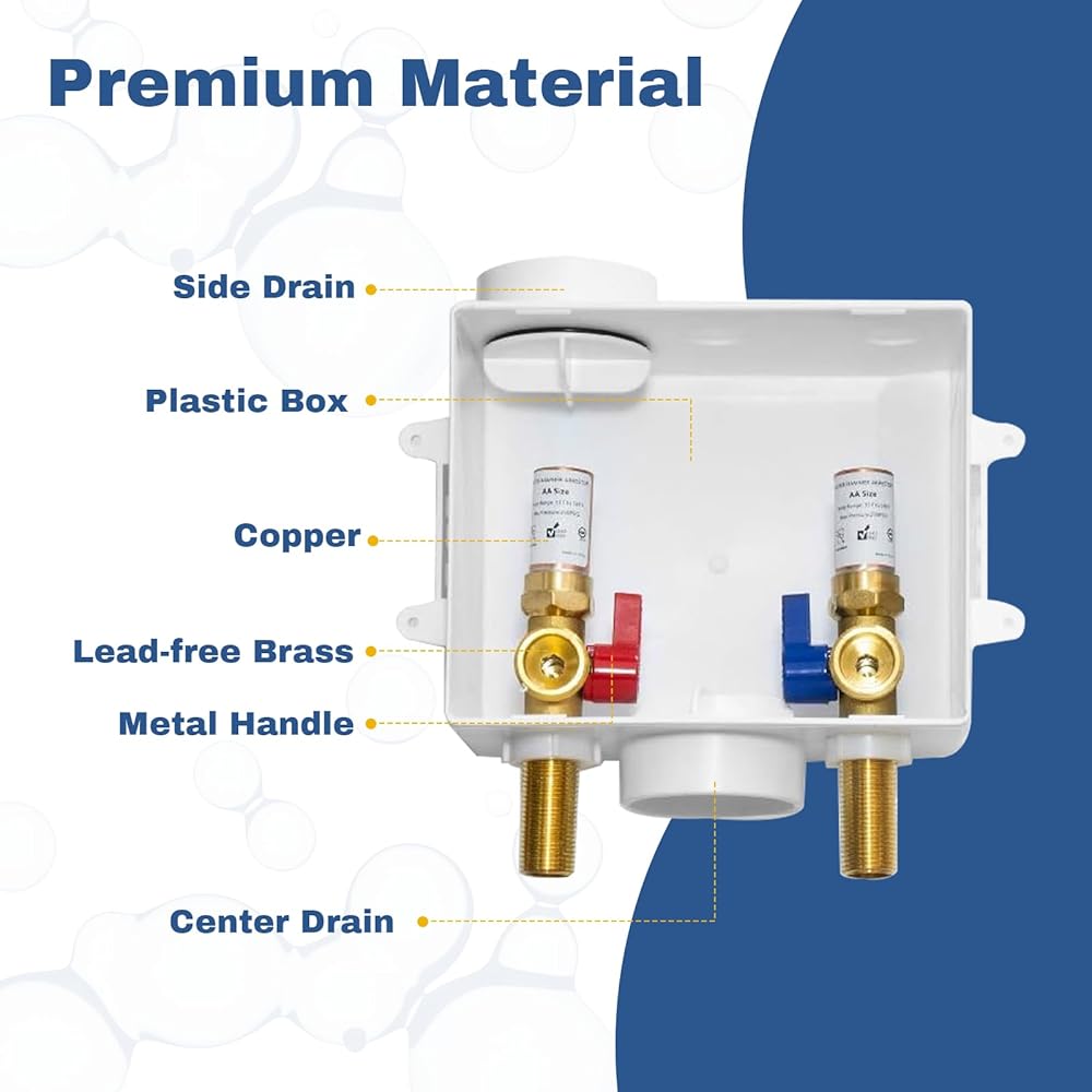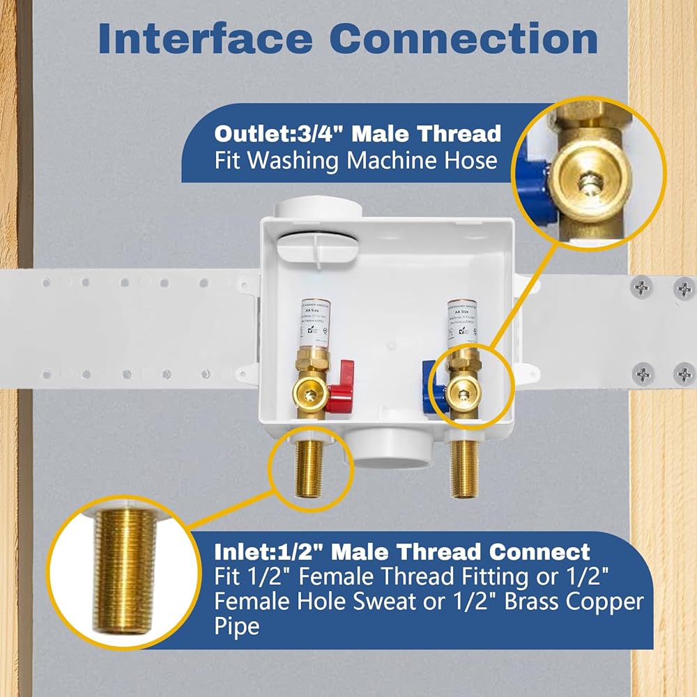 - نوع الاتصال: يعمل الجانب المدخل من مربع الغسيل مع 1/2 "النوع M/L/K أنبوب النحاس ، وجانب المخرج يناسب خرطوم الغسالة 3/4"