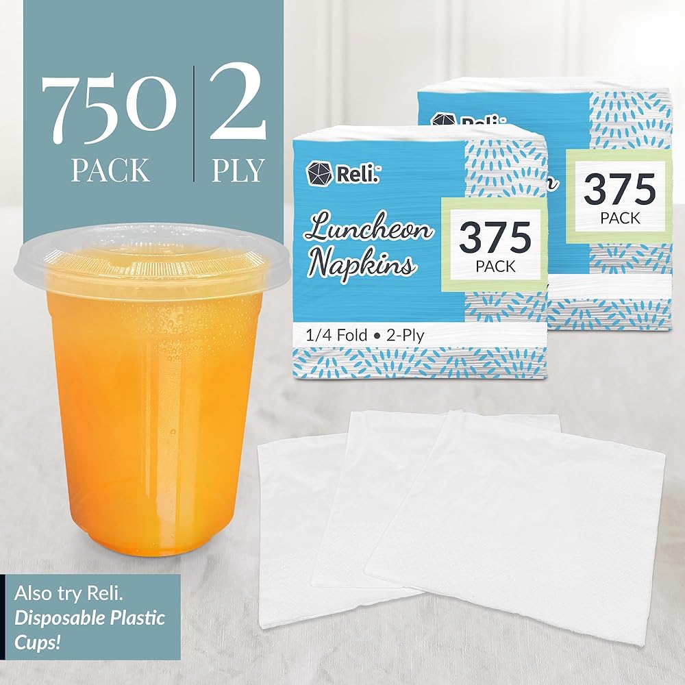 ريلي. مناديل ورقة الغداء (750 حزمة الجزء الأكبر) 2 صفي | مناديل الغداء يمكن التخلص منها 11 "× 12" | الاستخدام اليومي في مأدبة غداء ، مطبخ ، عشاء ، مطعم ، حفلة ، طاولة | الجزء الأكبر ، 1/4 أضعاف (أبيض)