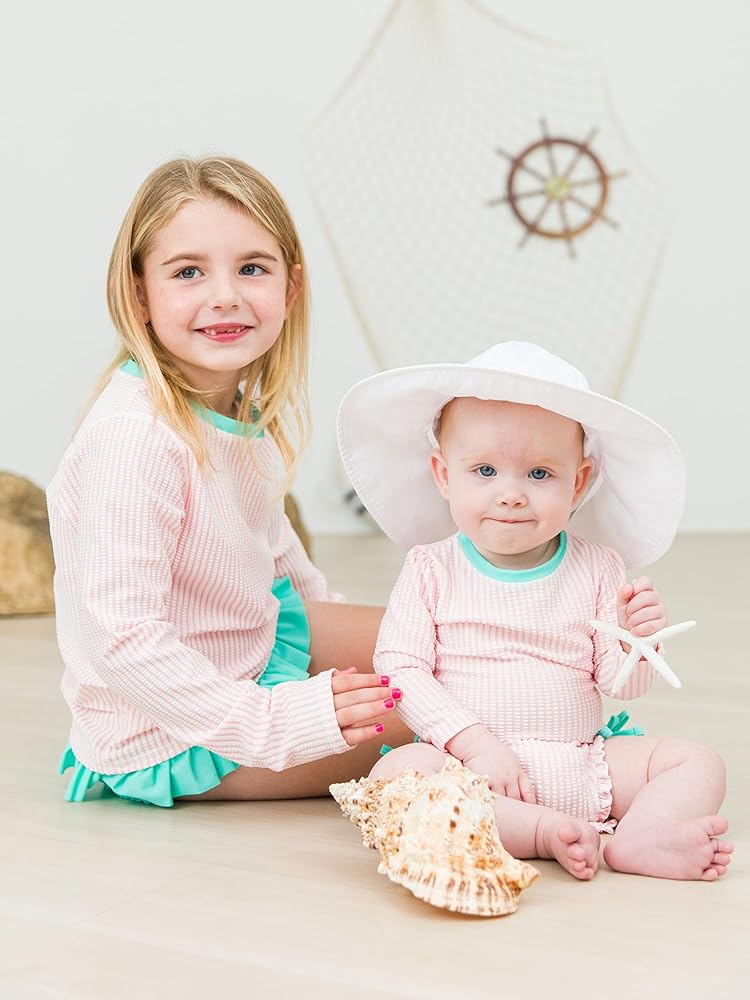 حماية من أشعة الشمس المدمجة - احتفظ بشرة فتاتك الصغيرة الحساسة في الشمس! يتميز Rufflebutts المدمج في UPF 50+ ، لذا هناك المزيد من اللعب وأقل قلقًا بشأن الأشعة فوق البنفسجية القاسية. مثالي للشاطئ أو البحيرة أو البركة!