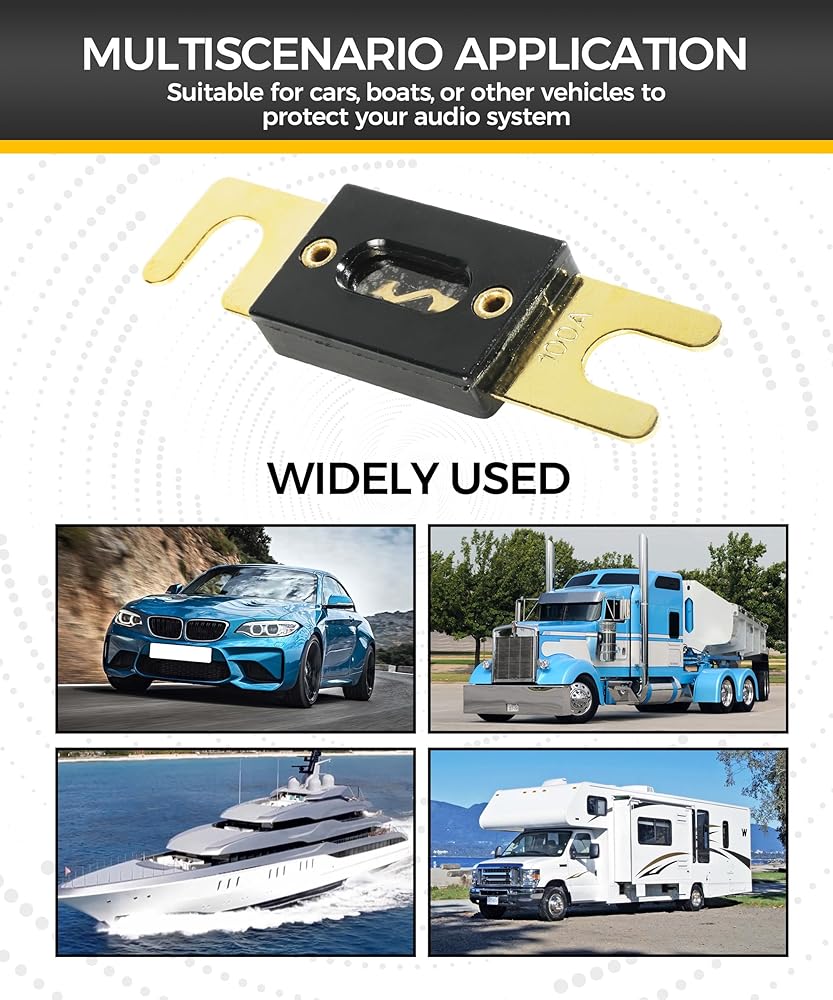 • [Essential Tools] Car audio fuses have good conductivity, can improve efficiency and reduce circuit power loss, prevent your electrical equipment, cables and circuits from overcurrent and short circuit, ensure electricity safety, and provide reliable and high-performance protection for your electrical system. Note: Before purchasing, please check whether the product ampere rating matches to ensure correct installation.
