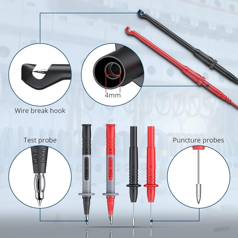 مجموعة واسعة من التطبيقات: مجموعة اختباراتنا مناسبة مناسبة للمدارس والمنازل والمختبرات والمصانع. تضيف مجموعة كاملة من الملحقات تنوع الاختبار ، مما يجعله مثاليًا لقياس دبابيس IC الصغيرة ، وأضواء LED ، والمكونات الصغيرة ، ومتوافقة مع أدوات الاختبار المختلفة