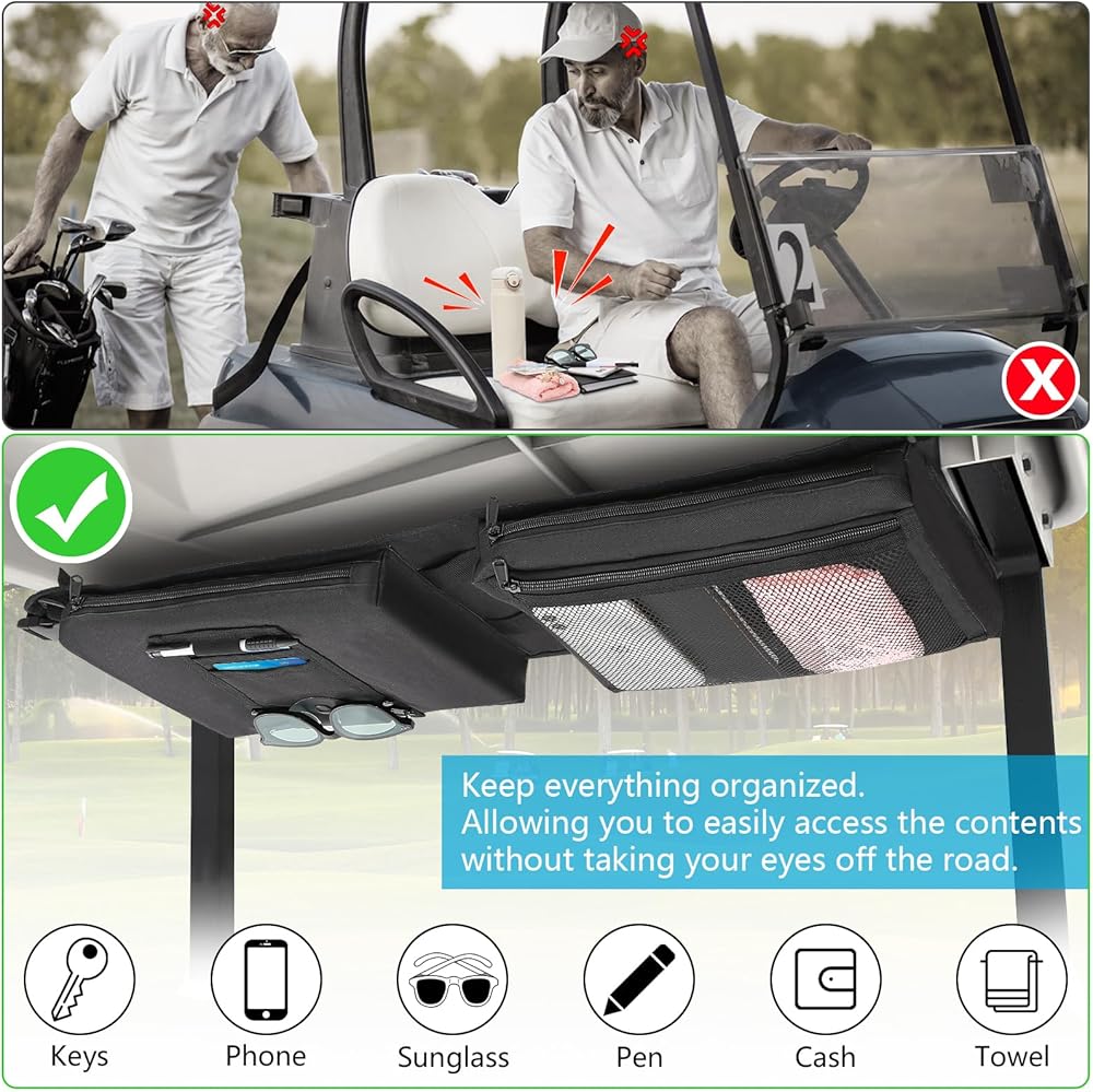 • 【قيادة آمنة】 يمكن أن تخزن حقيبة تخزين عربة الجولف العلوية عددًا كبيرًا من العناصر وهي مصممة للأشياء الصغيرة (نظارات الهاتف الخلوي/ الشمس/ المحفظة/ المفاتيح/ القلم/ المناشف). يساعد على تقليل القيادة المشتتة من خلال السماح لك بالوصول بسهولة إلى محتويات حقيبتك دون أن ترفع عينيك عن الطريق. إنه يلغي إزعاج ترك حقيبتك عند أقدام الراكب.