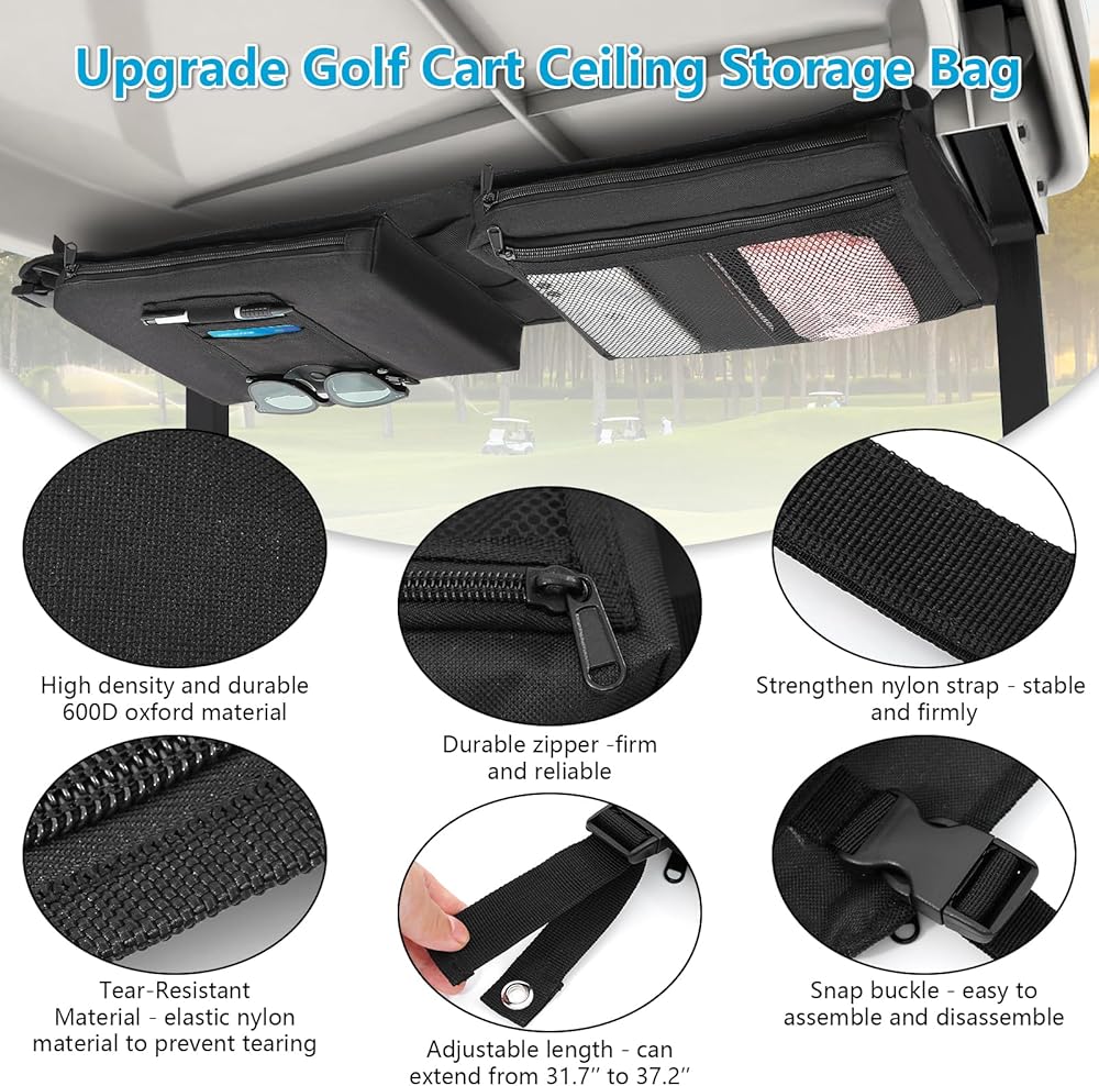 حقيبة التخزين في عربة الجولف ، تعزز منظم شبكة السقف في أكسفورد غولف ، ولا توجد حقيبة تخزين سقف عربة غولف متوافقة مع ياماها محرك/نادي سابقة/وتيرة/فصاعدًا