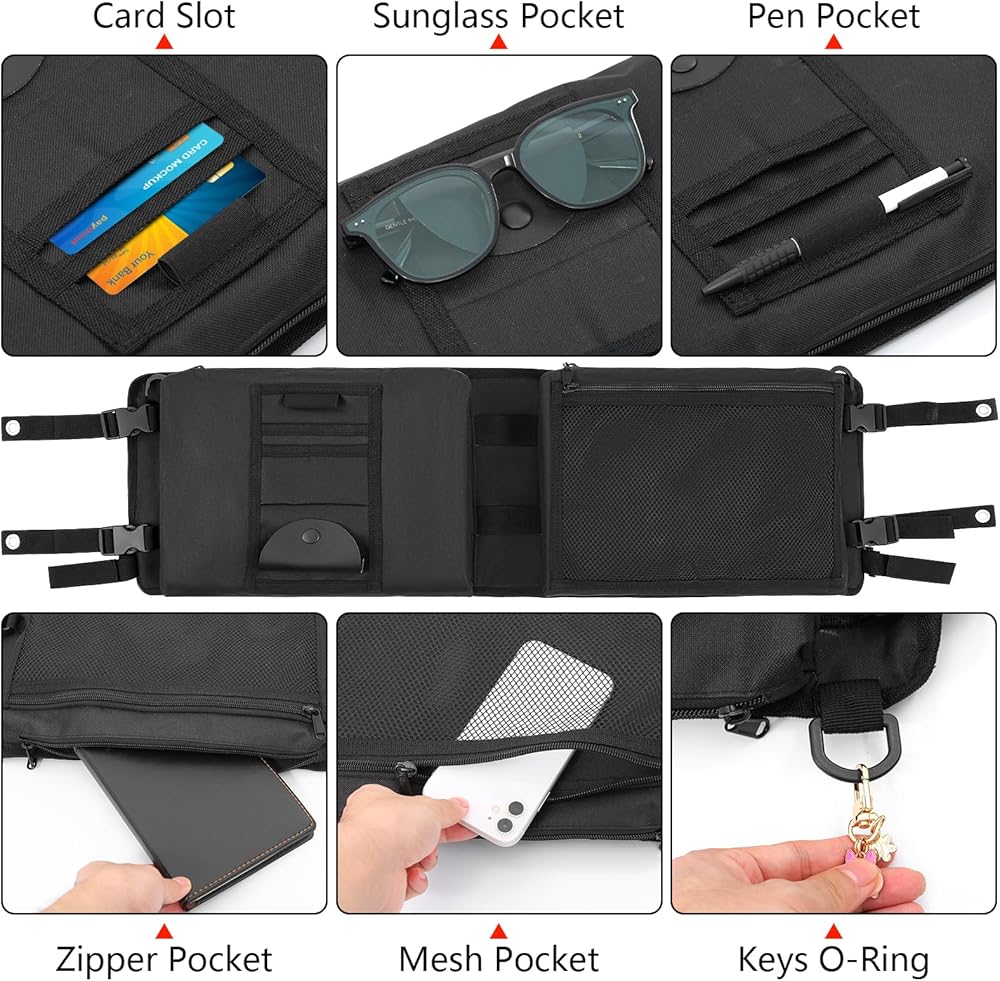 • 【ترقية مساحة تخزين ممتازة】 حقيبة منظمات سقف عربة الجولف هذه هي 2024 ترقية جديدة واحدة. التي لديها الكثير من القدرات التنظيمية. تقسم السوستة 4 المنفصلة نفسها إلى 4 غرف تخزين مغلقة عميقة. يحتوي على 3 جيوب مغلقة عميقة في المقدمة ، وجيب طويل ختم على طول الظهر ، و bungies على طول الظهر لتزويد شيء ما. يسمح حامل البطاقة الأمامي بتوضع البطاقات بسهولة وتجنب أن تكون فوضويًا. هذه ليست جيوب صغيرة غلبة - ستحتفظ بالفعل عناصر تحتاجها وتستخدمها.
