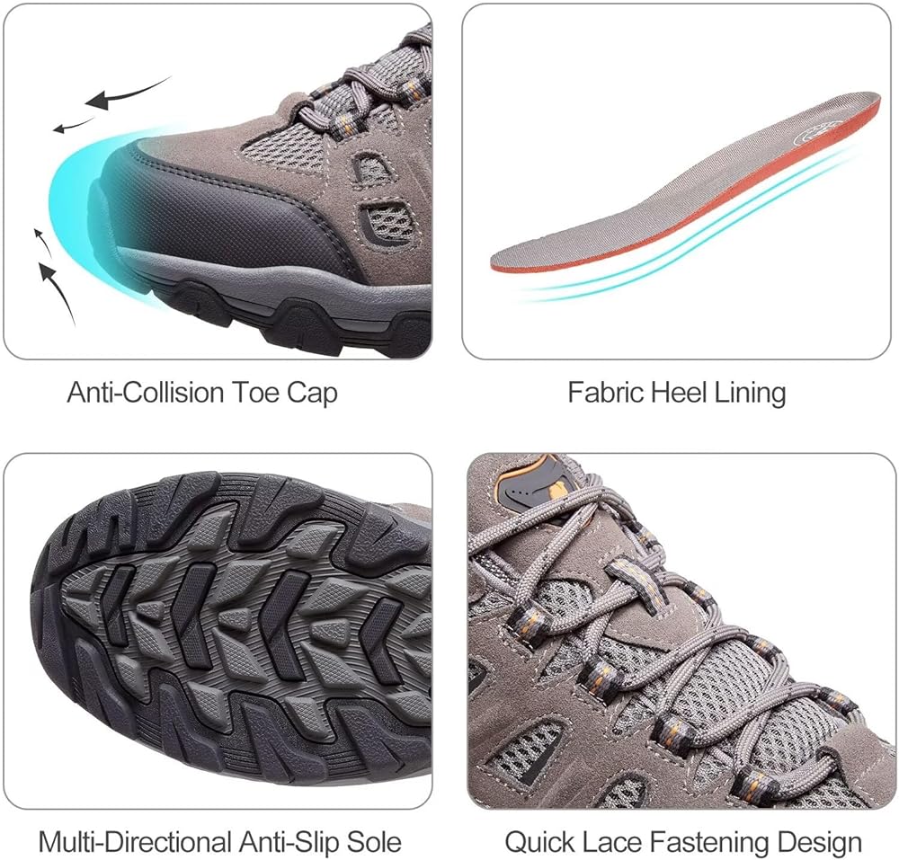 👣【 قابلة للتنفس ومريحة】 الجلدية + شبكة + بو لتشكيل الجزء العلوي ، وهو مقاوم للارتداء ومقاوم للخدش أثناء التنفس وليس خانق ، والحفاظ على قدميك جافة ومريحة في جميع الأوقات ، والتي يمكن أن تلبي احتياجات مختلفة في الهواء الطلق أنشطة.