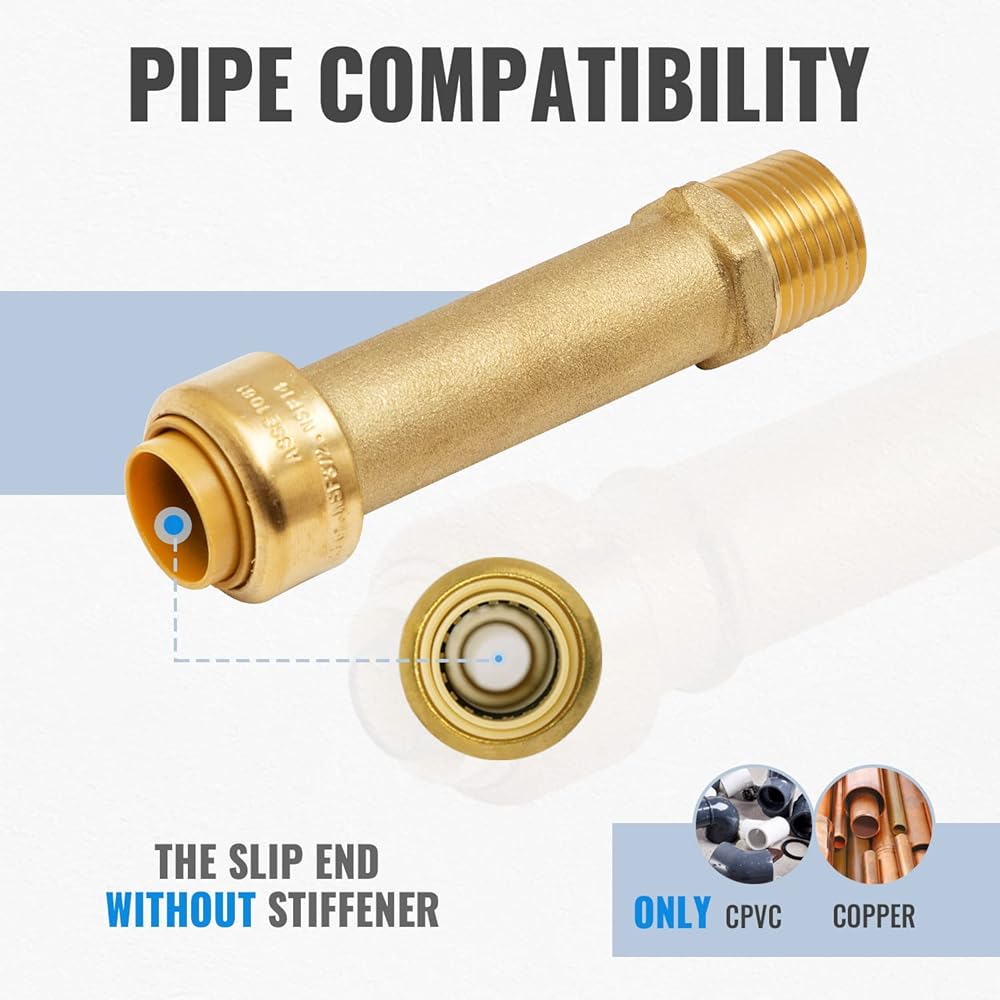 Sungator 1/2 بوصة محول الذكور الانزلاق ، أفضل طريقة لإصلاح الطوارئ ، لا يوجد تجهيزات من النحاس النحاسي من النحاس الرصاص للربط لأنابيب PEX ، والنحاس ، CPVC ، مع 1 قطع اتصال وشريط ختم واحد ، حزمة 2