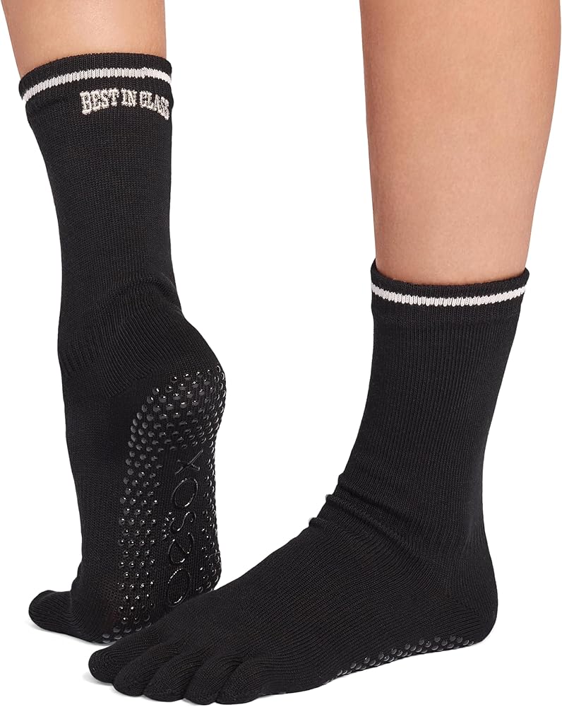 FULL TOE GRIP SOCKS: The ToeSox Crew Grip Sock is designed to stay snug on your foot through all your activities and is the perfect grip sock for yoga, Pilates, and barre. They provide a secure footing on any surface.