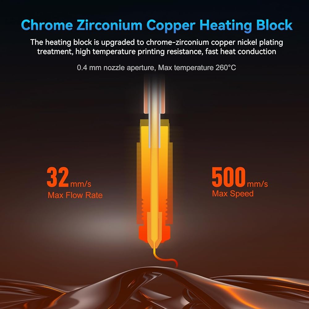 دعم طباعة PLA و ABS و PETG و TPU و PP و PC و NYLON و PEEK و PEI وغيرها من المواد الاستهلاكية