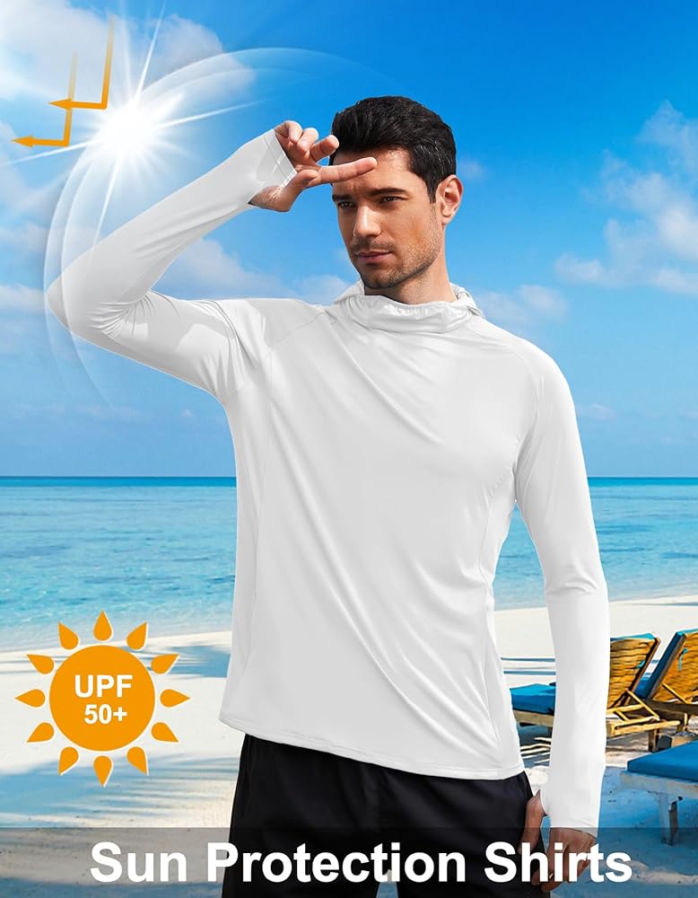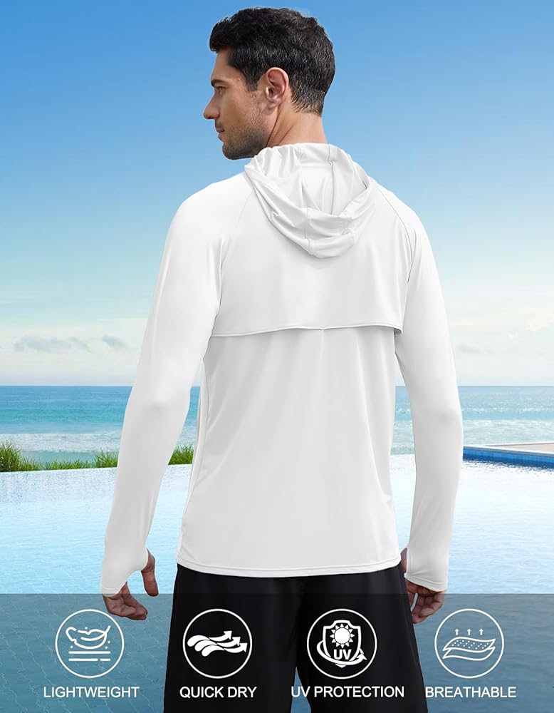 Any Occassions: Sun hoodie mens perfect for summer outdoor activities, fishing, swimming, hiking, traveling, boating, rock climbing, walking, running, etc.WE RECOMMEND ORDERING ONE SIZE UP.