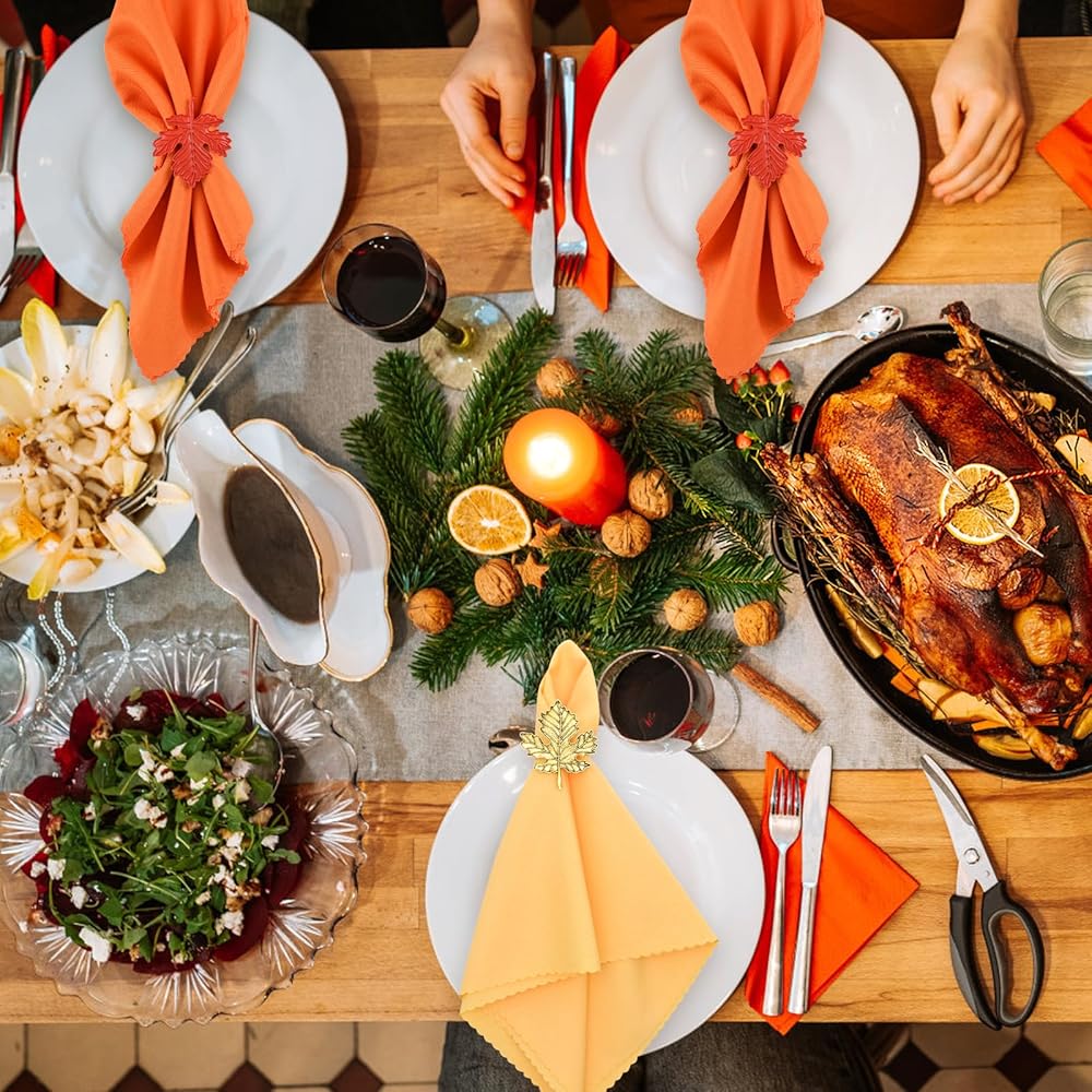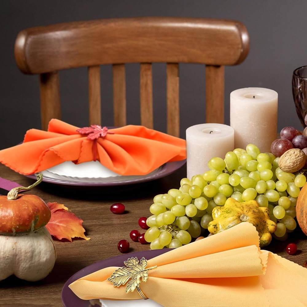 • زخارف عيد الشكر الخريف: تتم مطابقة عناصر أوراق القيقب الكلاسيكية مع البرتقالي والأصفر الكلاسيكي لخلق جراء قوي في عيد الشكر. سواء كنت تحب إعدادات طاولة النمط التقليدية أو الحديثة ، يمكن أن تمتزج مجموعات منديل عيد الشكر هذه بسهولة وتعزيز الجمال العام