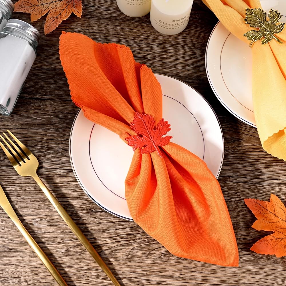 VAIPI 20 PCS خريف عيد الشكر مناديل وحلقات منديل ، مناديل القماش السقوط مناديل مابل ليف فول حاملي رنين لعيد الشكر ، مأدبة الخريف ، حفل عشاء الخريف