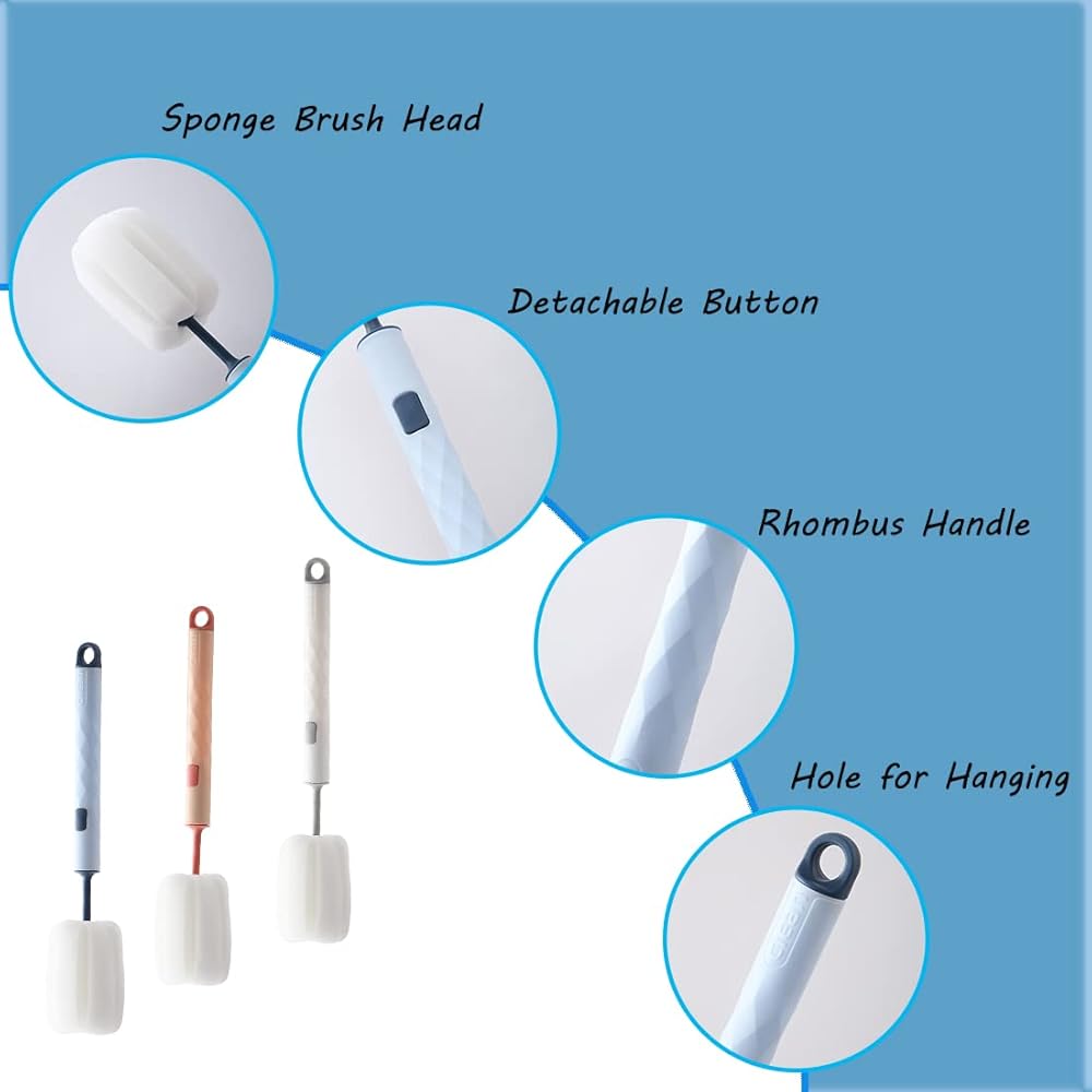 3pcs تنظيف الزجاجة تنظيف الزجاجة فرشاة قابلة للفصل منظف فرشاة الرأس مع مقبض طويل بلاستي