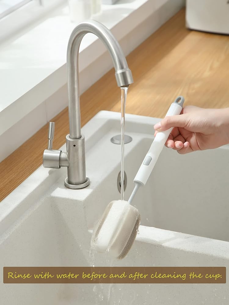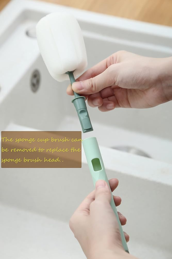 • رأس فرشاة الإسفنج ناعم للغاية ، وجميع أنواع الكؤوس صحيحة تمامًا ، وهو مناسب لحياتك. المقبض قابل للفصل لجميع أنواع الأشكال المختلفة ، حتى أكواب الضيقة الفمية.